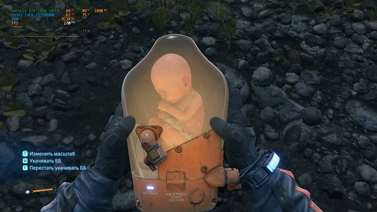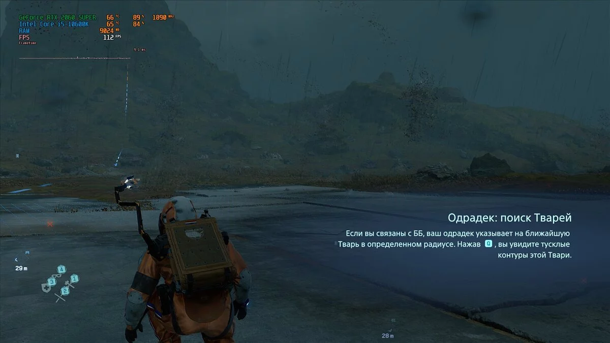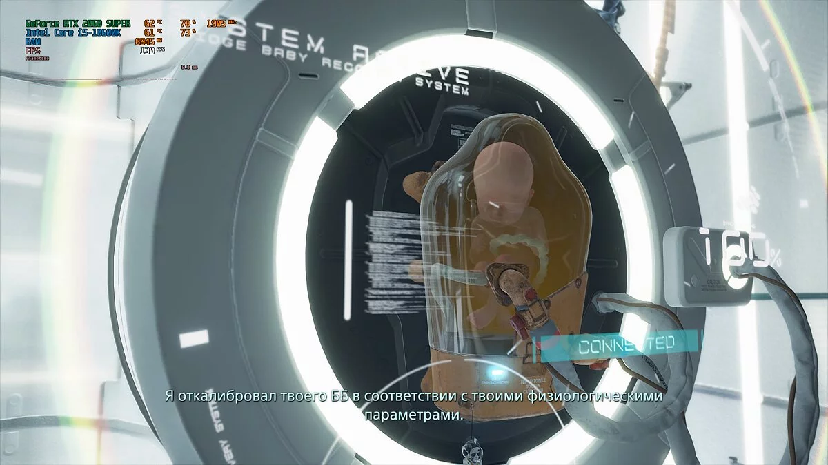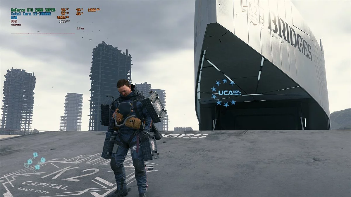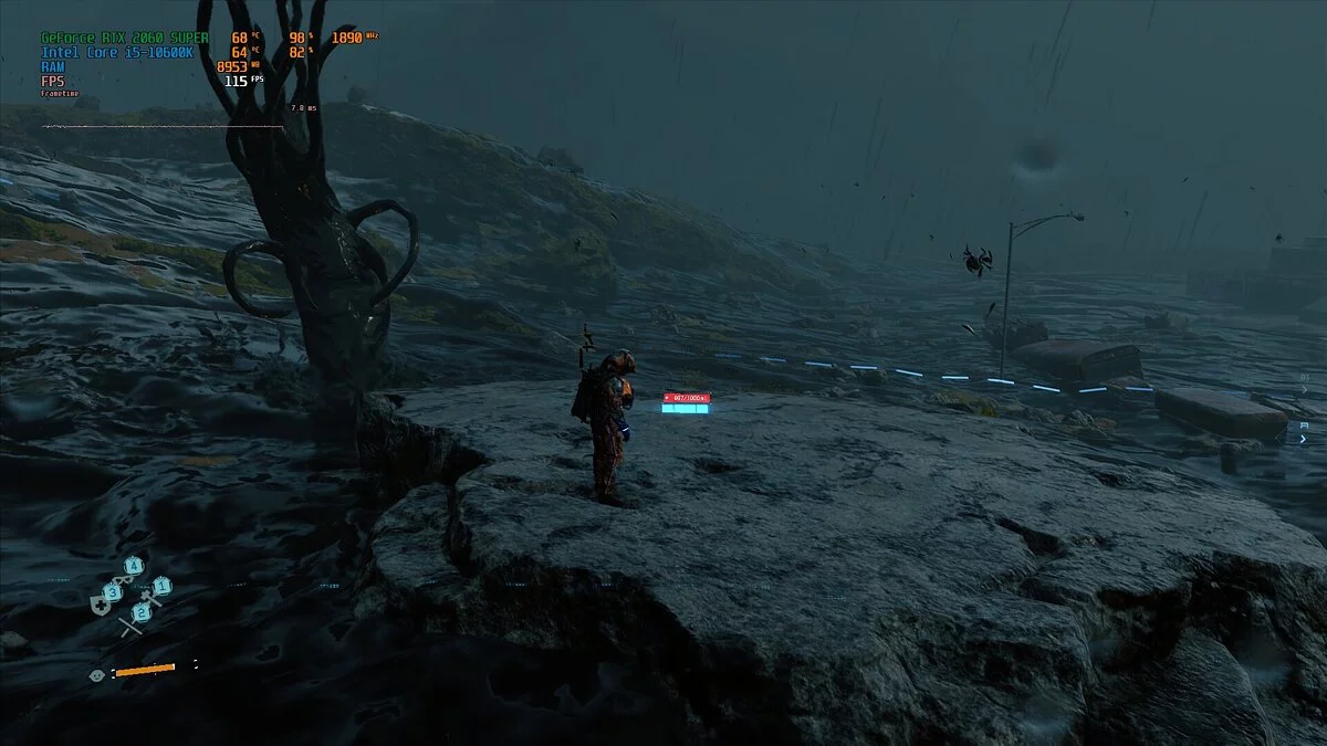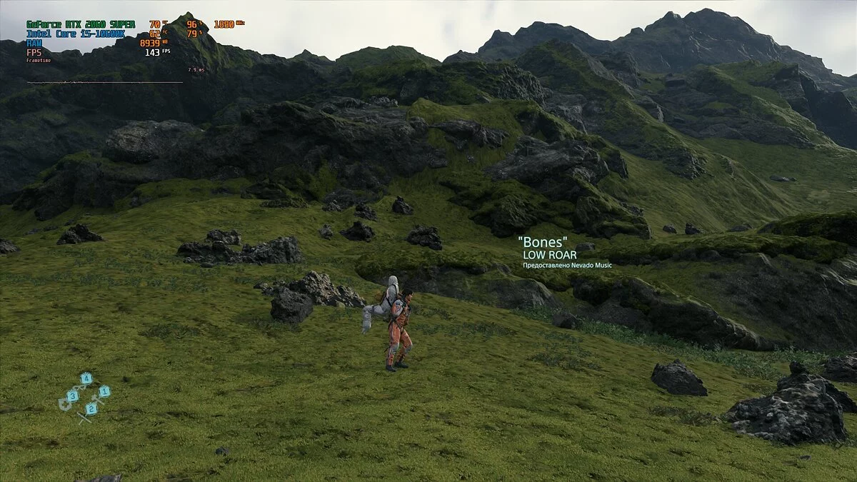 Death Stranding. FPS выше 30 кадров — это одна из главных фишек PC-версии игры японского геймдизайнера. Максимальные настройки графики, включенная DLSS, буквально самое начало игры (чтобы ничего не заспойлерить пропустившим релиз игры на PS4). Кастомная сборка играючи выдает FPS выше 100. По сравнению с консольным релизом это просто небо и земля. Каких-то жестких просадок даже во время боевой сцены с гигантским чернильным кальмаром не наблюдалось.