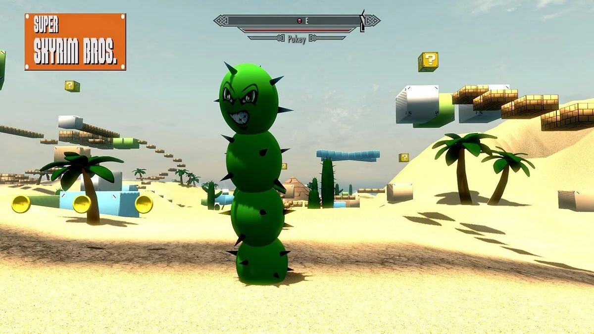 Известный водопроводчик заглянул и в Скайрим. В этот раз умельцы не остановились на смене скинов, а воссоздали в TES V полноценное грибное королевство. Теперь на просторах Скайрима цветут плотоядные растения, бегают живые грибы и ползают мультяшные черепашки. Зеленые водопроводные трубы тоже на месте.