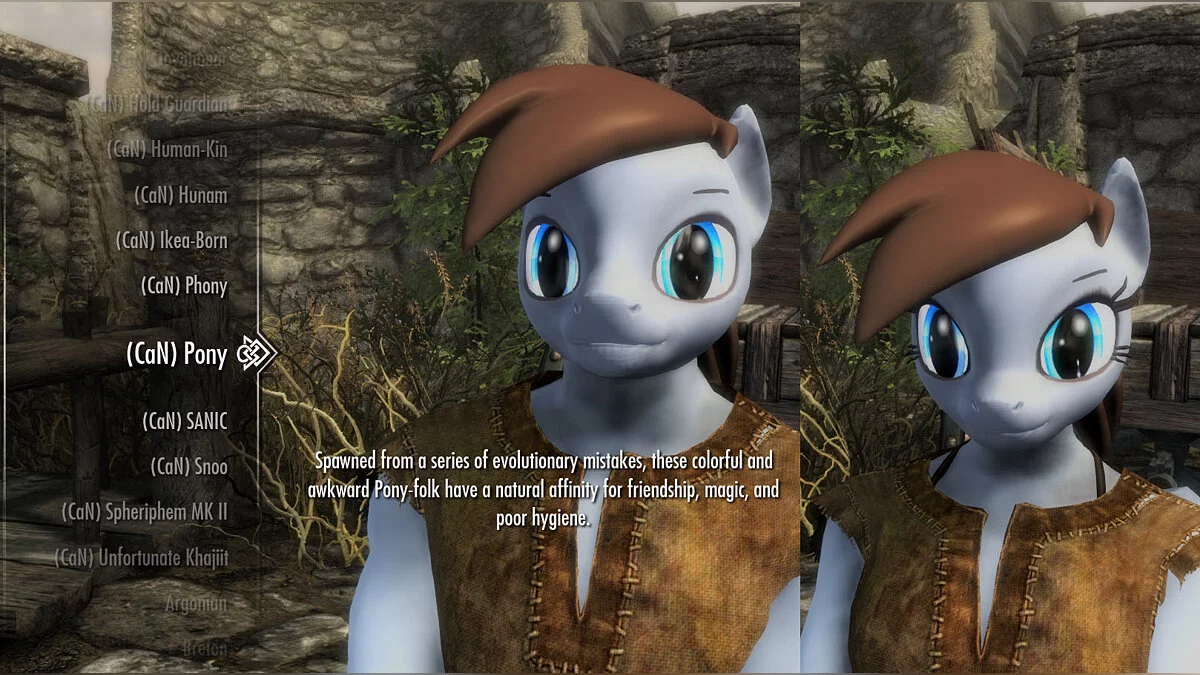 Crimes against Nature — квинтэссенция абсурдного фанатского творчества. По большому счету CaN — это навороченный редактор персонажа, но упор тут идет не на лор вселенной TES, а на полную безбашенность. Здесь и голова Соника, и робот из Portal, и персонажи из мультфильма My Little Pony. Благодаря Crimes against Nature можно наделить Довакина даже лицом табуретки.