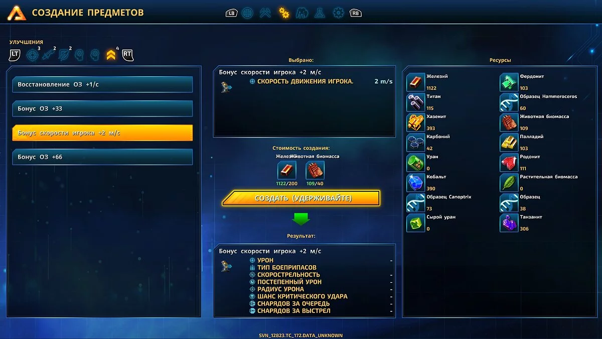 Вариантов прокачки более чем достаточно. Это и базовые характеристики (здоровье, резисты, скорость движения), и улучшение оружия ближнего и дальнего боя, создание нового оружия, одноразовое снаряжение (щиты, баффы), а также какие-нибудь хитрые расходники вроде быстрой починки и атомного заряда.