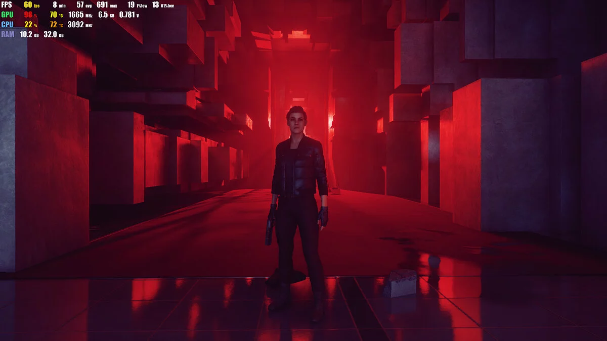 Стабильные 60 FPS со средними настройками трассировки лучей удалось получить в разрешении 2560x1440 с DLSS. Сложнее всего дались сцены сражений в больших помещениях, где есть зеркальные поверхности. В эти моменты FPS падал до 55. В таком режиме играть более чем комфортно, а выглядит Control при этом замечательно. Кстати, 8 ГБ памяти видеокарты с запасом хватило на ультра-настройки текстур, поэтому при желании можно поиграться с опциями графики.