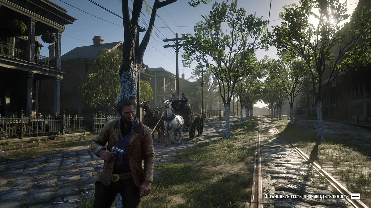 Стабильные 60 FPS в тесте производительности RDR2 показала в 1080p со средними настройками. При этом остался запас порядка 15 кадров в секунду на случай тяжелых сцен и массовых перестрелок. Плюс всегда можно настроить RDR2 под себя, ведь разработчики внедрили множество опций графики. Опять же, 8 ГБ видеопамяти позволяют сразу же выставить текстуры на «Ультра», что компенсирует резкость картинки при ненативном разрешении экрана.