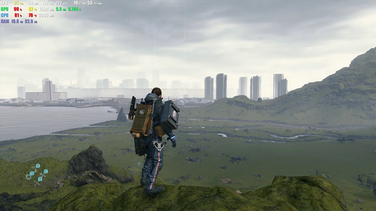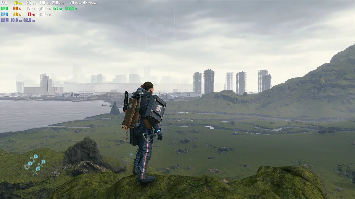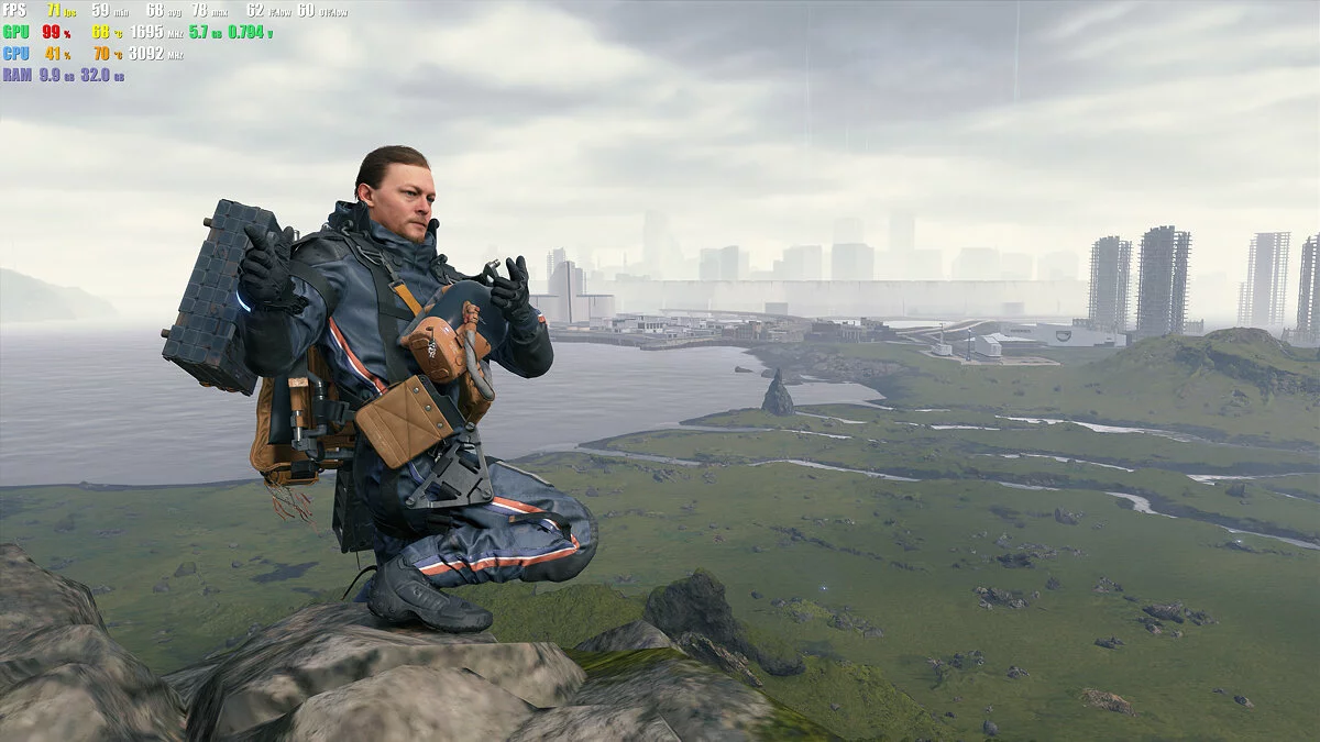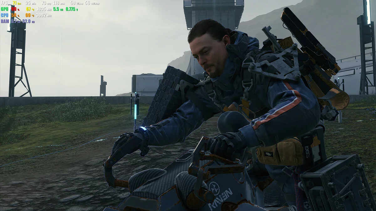 Не могли мы пройти и мимо Death Stranding, которая также поддерживает DLSS 2.0, а значит позволит нам опробовать высокие разрешения. Мы выбрали настройку «Производительность» для DLSS и получили в среднем около 90 FPS на максимальных настройках в 3840x2160. Если же выбрать настройку «Качество», то счетчик опустится до 70 FPS.