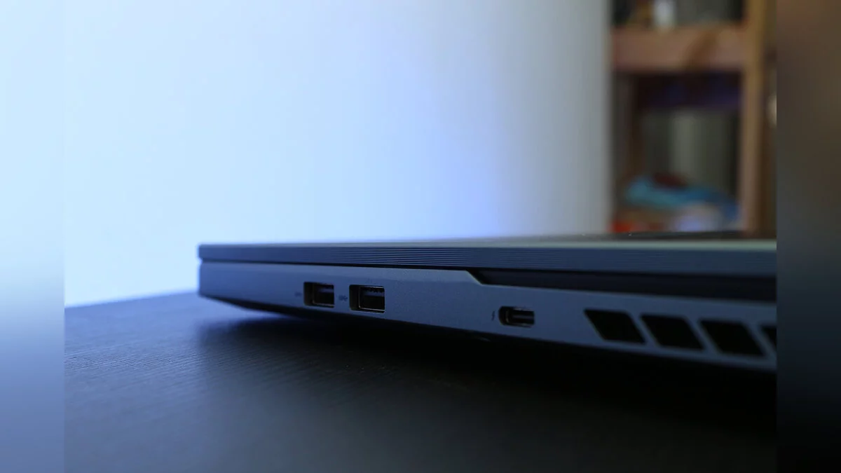 Разъем для основной зарядки помещен на левую сторону ноутбука рядом с двумя 3,5-мм аудиоразъемами для наушников и микрофона. С правой расположились два порта USB 3.2 Gen1, а также USB 3.2 Gen2 Type-C, к которому подключается второй, легкий блок питания.
