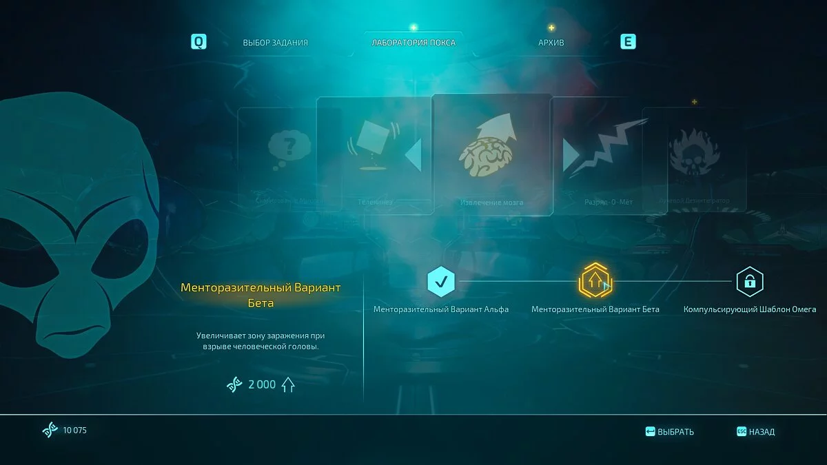 Да и вот еще что: сбор мозгов не просто так главная задача в Destroy All Humans!, с их помощью мы прокачиваем как самого Крипто-137, так и его летающую тарелку. Улучшений тут не так много, но они полезные и их результат отражен в геймплее. К чести разработчиков, прокачка очень ненавязчивая (это вам не AC: Odyssey), игра проходится вполне свободно, даже не вливая мозги в развитие.