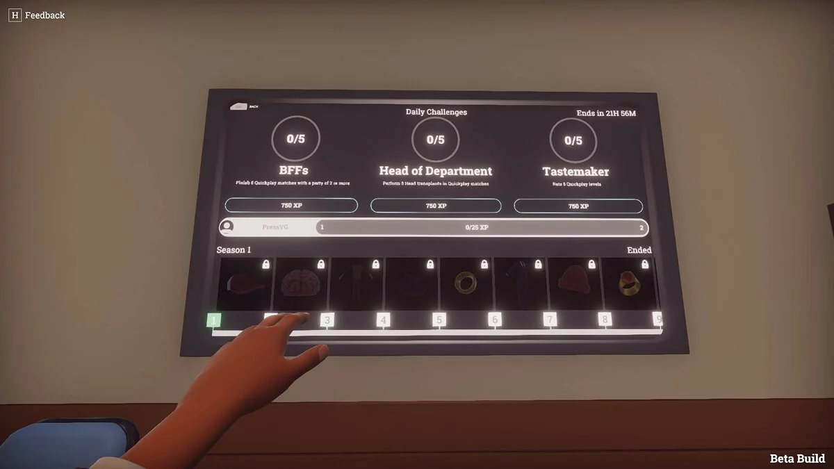 В рамках закрытой беты можно было изучить пять из двенадцати уровней кампании. Правда, сначала пришлось пробежать обязательное обучение в двух частях. Дело в том, что в Surgeon Simulator 2 игрок получил куда больше свобод и возможностей. Если в оригинале на экране барахталась лишь рука безымянного хирурга, то теперь по больничным палатам бегает колоритный персонаж. Всего их четыре: подросток в кожанке, одна женщина, будто сошедшая с плаката We Can Do It!, ещё одна менее воинственная женщина и усатый джентльмен с пёстрыми носками под цвет галстука.