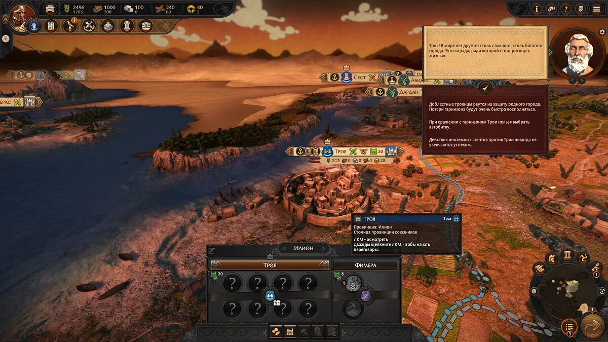 Теперь понятно, почему на закрытом показе разработчики упорно обходили вниманием режим глобальной карты и другие классические механики. Дело в том, что Total War Saga: Troy сделана по тем же лекалам, что и прошлые части — Three Kingdoms и Thrones of Britannia. Увы, новизну нельзя отнести к сильным сторонам игры.