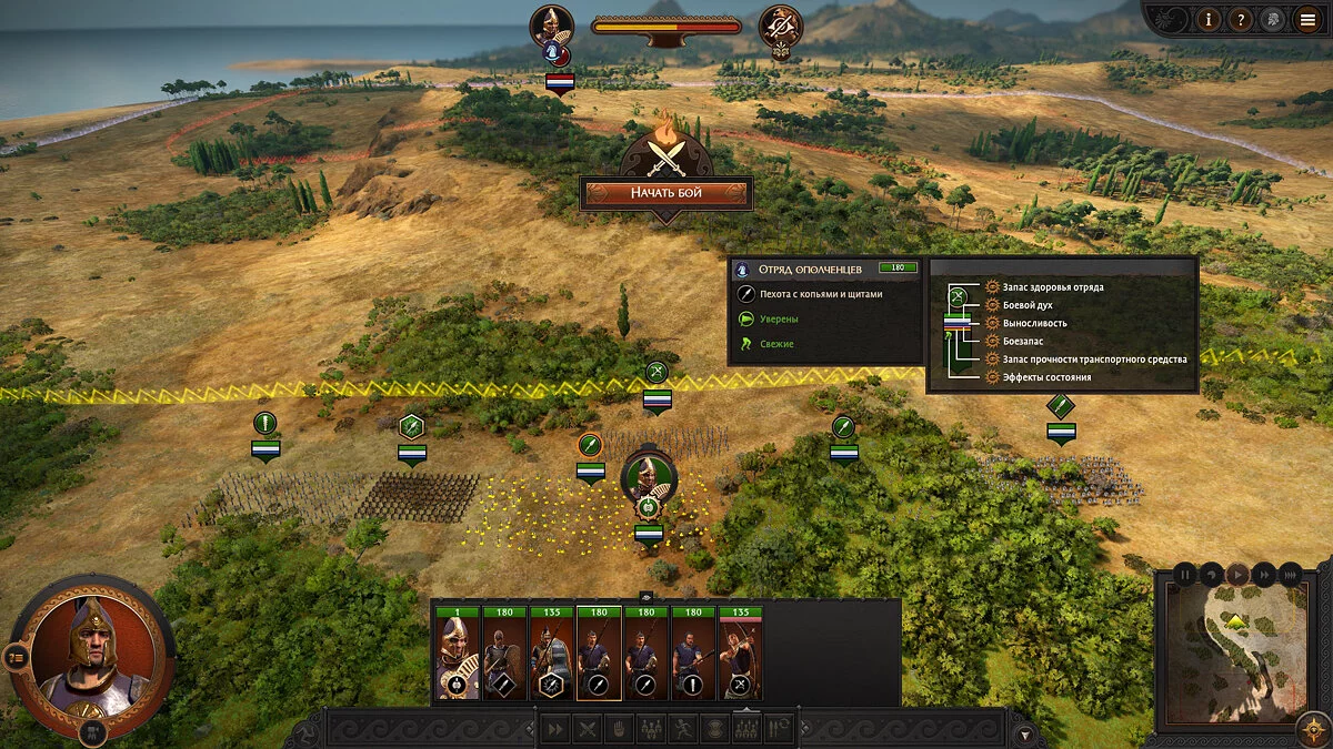 Троянская война — это конфликт, в котором участвовали в основном пехотные армии. И мифы тут ни при чем: в то время лошадей массово не приручали. Так что воевать придется пехотой, которая в игре делится на легкую, среднюю и тяжелую, а также может по желанию менять оружие.