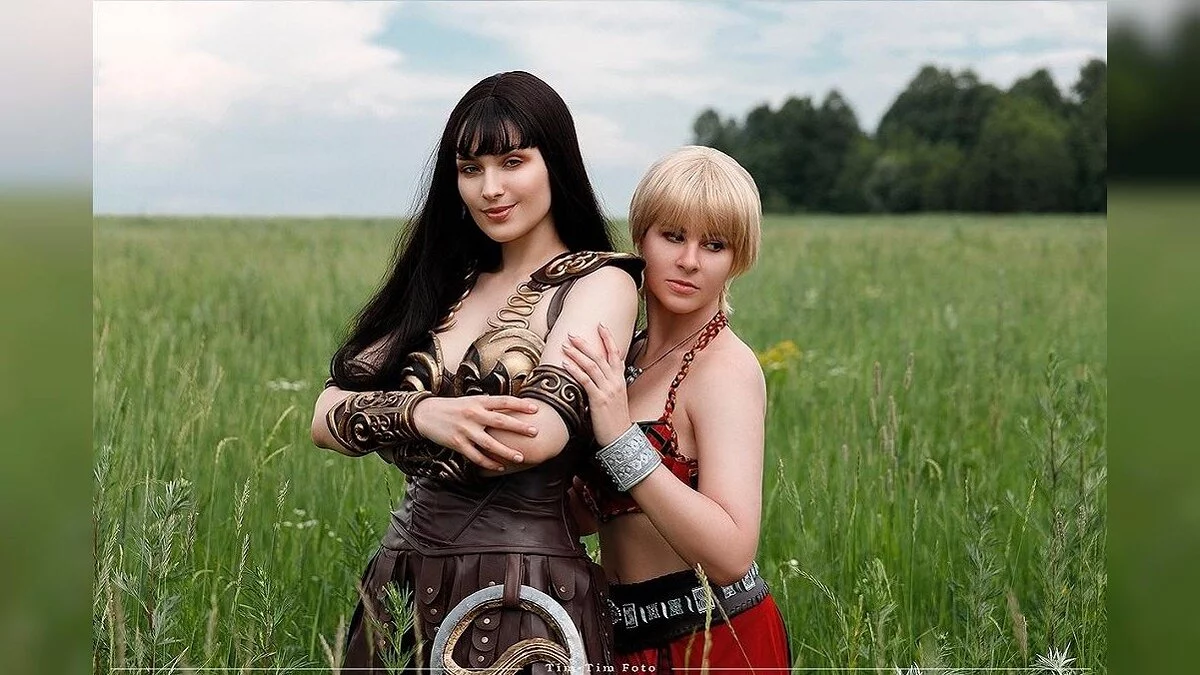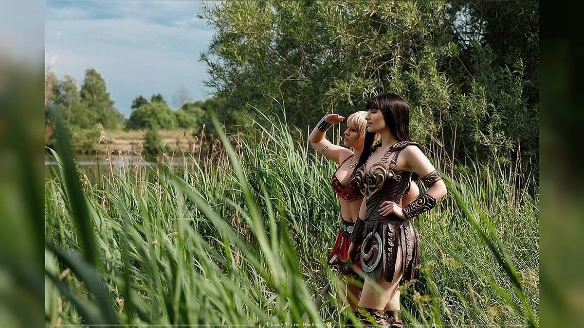 «Зена — королева воинов» — спин-офф сериала «Удивительные странствия Геракла». В нем рассказывалось об отважной воительнице Зене и ее приключениях в мире древнегреческих легенд. Сериал закончился в 2001 году, запланированный перезапуск был отменен, однако Зена до сих пор появляется в фанатской культуре. Так, ее образ воплотила в жизнь Женя Жук. В роли Габриэль — Анастасия Анатольевна. Фотограф — Tim-Tim.