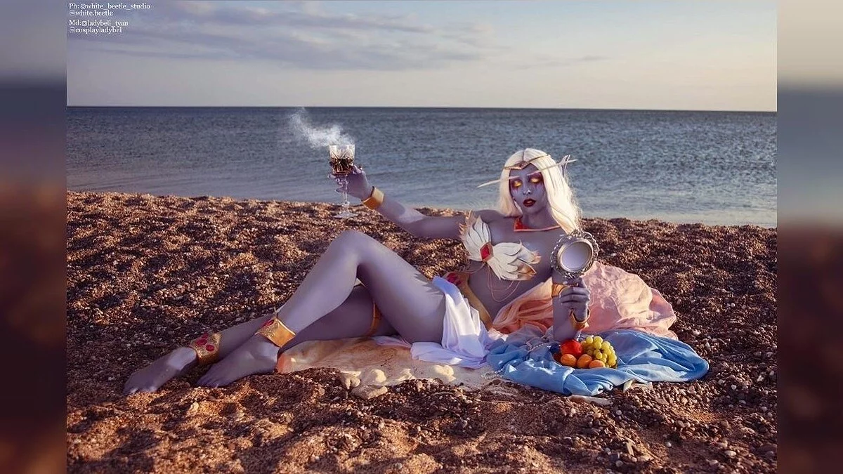 Азшара — последняя королева ночных эльфов. Она поддалась влиянию Саргераса и открыла портал, который пустил на Азерот войска Пылающего легиона. Однако многие эльфы предпочитают не верить в это и продолжают почитать Азшару как любимую королеву. Долгое время она считалась погибшей, и только в Battle for Azeroth выяснилось, что ее спасли и превратили в нагу. Косплей на Азшару сделала Ольга Кожевникова, также известная как Бубенчик. Фотограф — White Beetle.