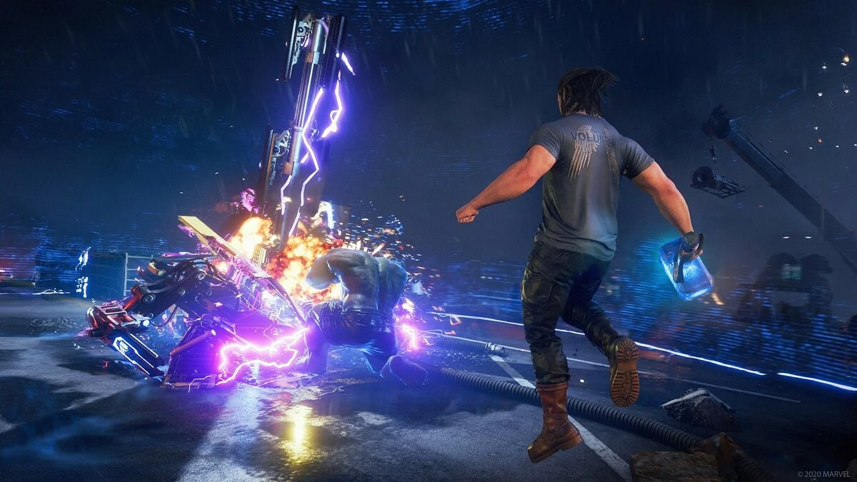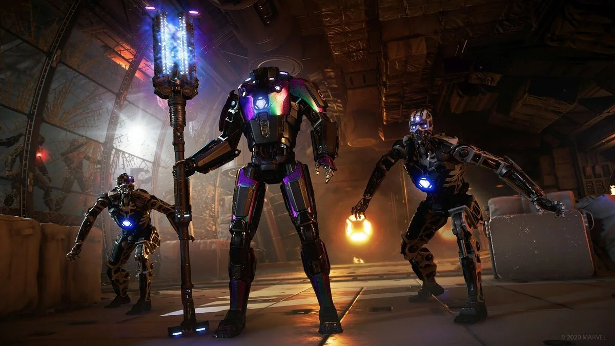 Ещё зачем-то Crystal Dynamics решила повторить формулу одноразового злодея из фильмов Marvel, забыв, что для большой супергеройской игры неплохо было бы иметь хотя бы пятерку знаковых плохишей. Вместо этого вот вам разноцветные роботы — большие и поменьше.