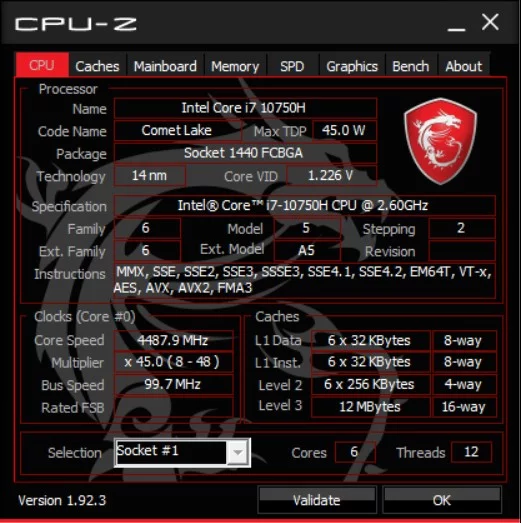 ПРОЦЕССОР: Intel® Core™ i7-10750H, 2.6 ГГц