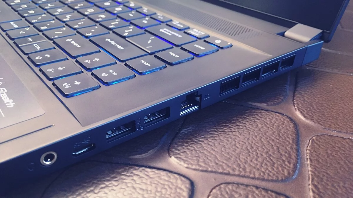 На правой стороне ноутбука находятся два порта USB 3.2 Gen 2, сетевой разъем RJ 45, USB Type-C, а также комбинированный аудиоразъем.