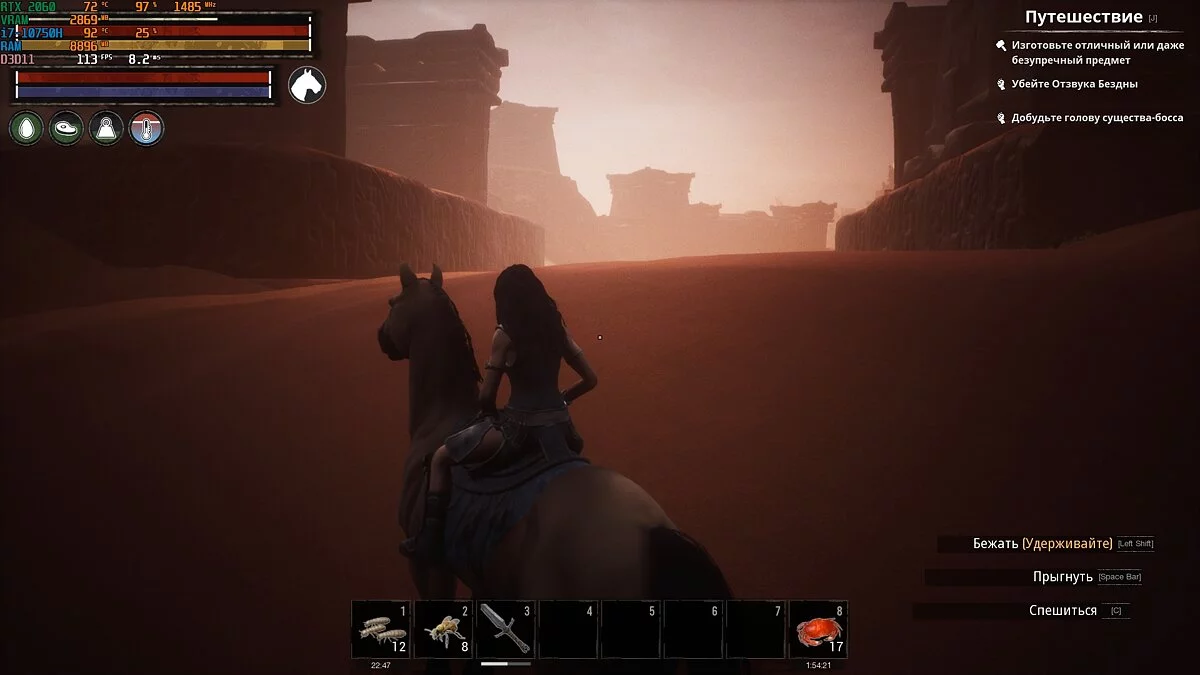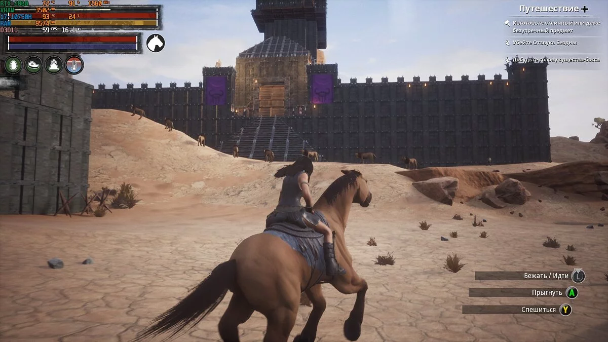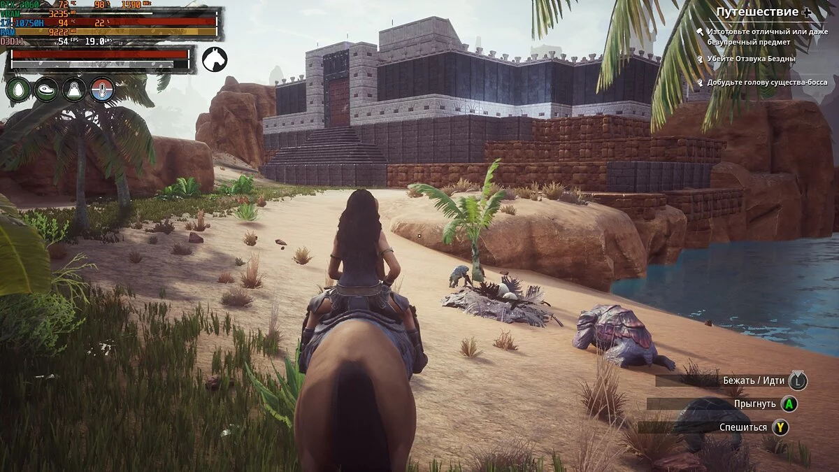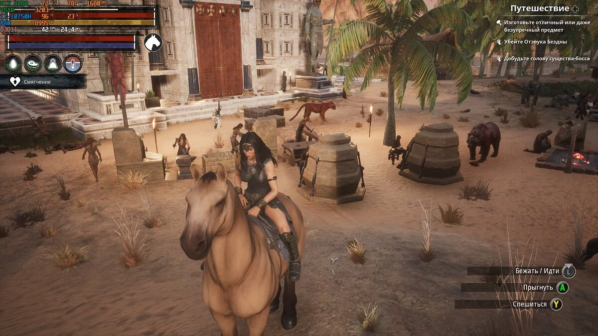 Conan Exiles. Многопользовательский симулятор выживания в мире Конана-варвара не может похвастаться отличной графикой, однако требует довольно мощное железо. Мы использовали высокие настройки графики. Игра плохо оптимизирована, получить стабильные 60 кадров невозможно даже на системе, которая соответствует системным требованиям, или, как в нашем случае, превышает их.