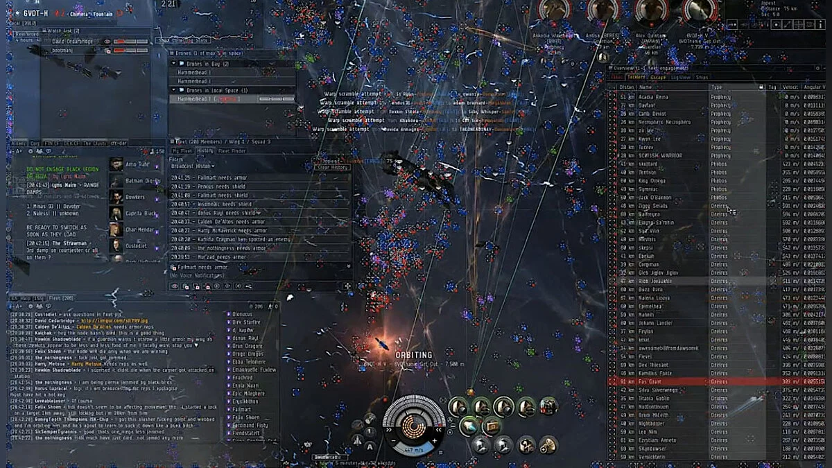 Но если вы хотите быть добряком для вас тоже найдется место — но ищите его сами. Игровая вселенная насчитывает более семи тысяч галактик, большинство которых не контролируется ни одной из фракций, и предоставлены игроку для самостоятельного изучения. Хочешь, копай руду, чтобы потом выгодно ее продать; хочешь, выполняй задания NPC и получай награды; а можешь вступить в гильдию и честно, без задних мыслей, ей служить: участвовать в налетах, защищать собственные территории, общаться и находить друзей. Занятий в мире EVE столько же, сколько и планет во вселенной — выбирай любое. Но если ты не умеешь воевать, то не переходи дорогу тем, кто умеет. Ведь вселенная круглая, а сервер один для всех, при этом одновременно в игре находится в среднем от 15 до 50 тысяч игроков.