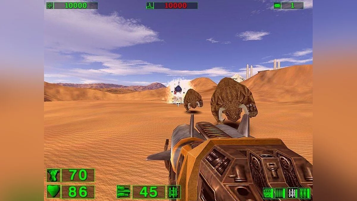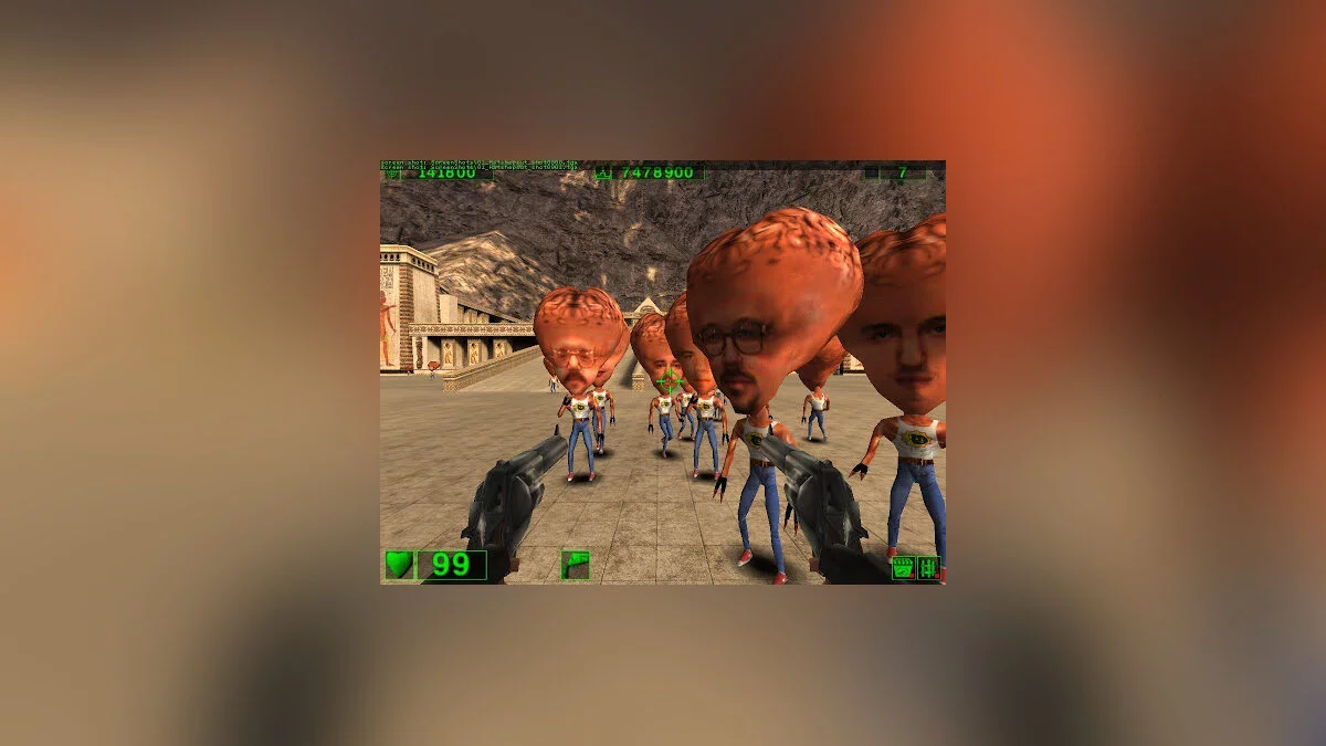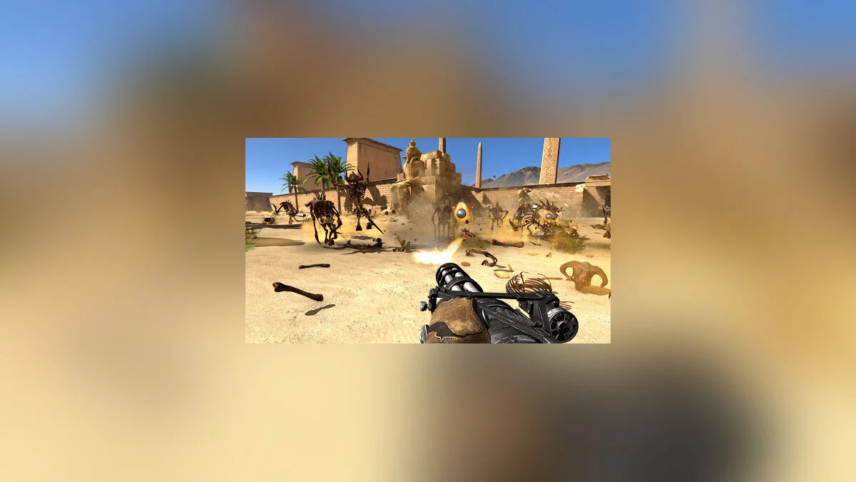 Вышедшая в 2001 году Serious Sam: The First Encounter снесла всем крышу, будто выстрелом из двустволки. Для тех, кто в танке: главным героем, как понятно из названия, стал товарищ по имени Сэм, который перемещается в прошлое, чтобы в одиночку выступить против армии межгалактического злодея Ментала и испортить его планы по уничтожению Земли и человечества. Собственно, на этом о сюжете можно забыть: в любой из частей серии он не играет никакой важной роли. Куда важнее — уметь стрелять. Не обязательно метко — не попал в одного врага, так попадёшь в другого, благо мечту разработчиков удалось воплотить на сто процентов: противников на экране почти всегда гораздо больше, чем десять. Раз эдак в двадцать. Тут не до тактического планирования: знай себе дави на гашетку, усеивая карту внутренностями супостатов.