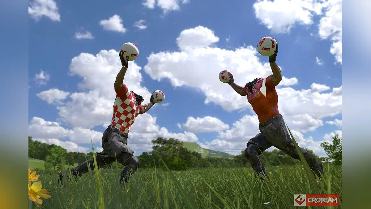 Создать шутер было весьма затратной задачей — как минимум, нужно было либо купить, либо разработать собственный движок. Так что начинали Croteam с футбольных симуляторов. Вышедший в 1994 году Football Glory был выпущен на консолях Amiga и PC, но ощутимых дивидендов не принёс — Sensible Software, создатели дико популярного Sensible Soccer, а также дилогии Cannon Fodder, подали в суд на хорватов, обвиняя их в плагиате (сходство действительно немалое). Молодые ребята не стали тягаться с довольно влиятельной компанией и сделали игру бесплатной. Через год они представили скромную аркаду Five-A-Side Soccer, но и она тоже особого успеха не принесла. Тем не менее, состав расширился до 12 человек — такими силами уже можно было попытаться реализовать что-то серьёзное.