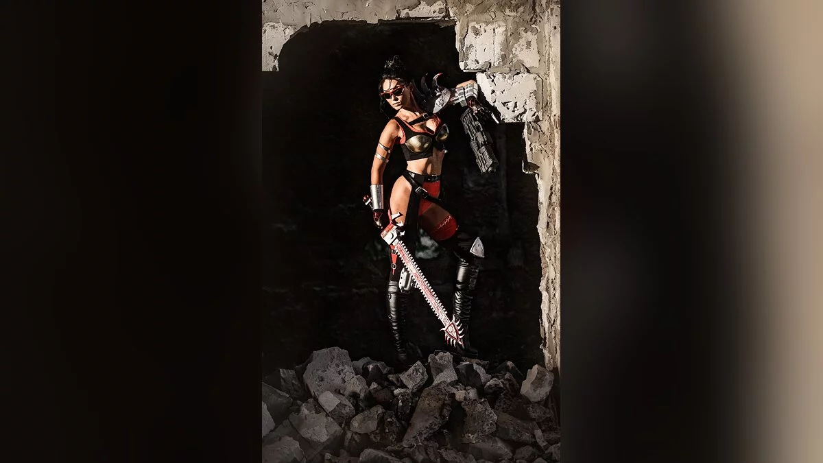 Снимали мы в конце лета, на заброшенной локации. Самое сложное — поймать момент, чтобы свет попадал только на меня, а все остальное уходило в тень. Съемка проходила вечером, и мне приходилось постоянно перемещаться вслед за солнцем. Да-да, со всем скарбом, броней и оружием. Было нелегко, но от таких съемок я получаю колоссальное удовольствие.