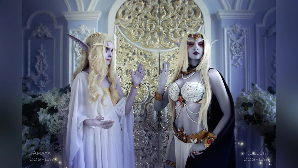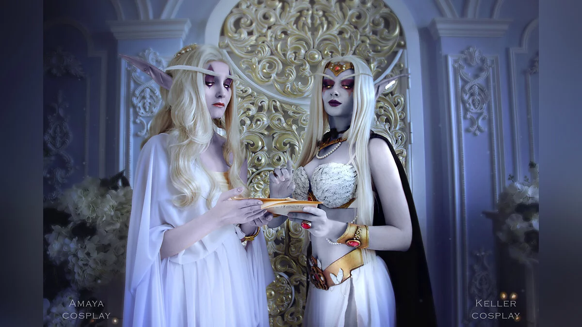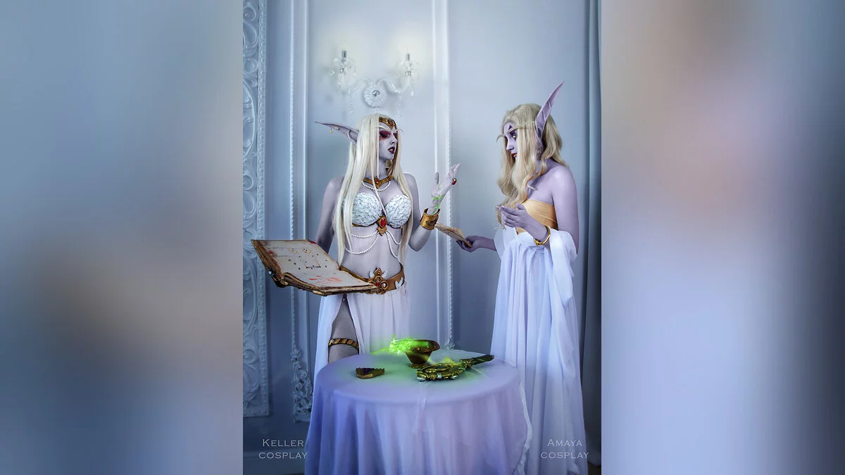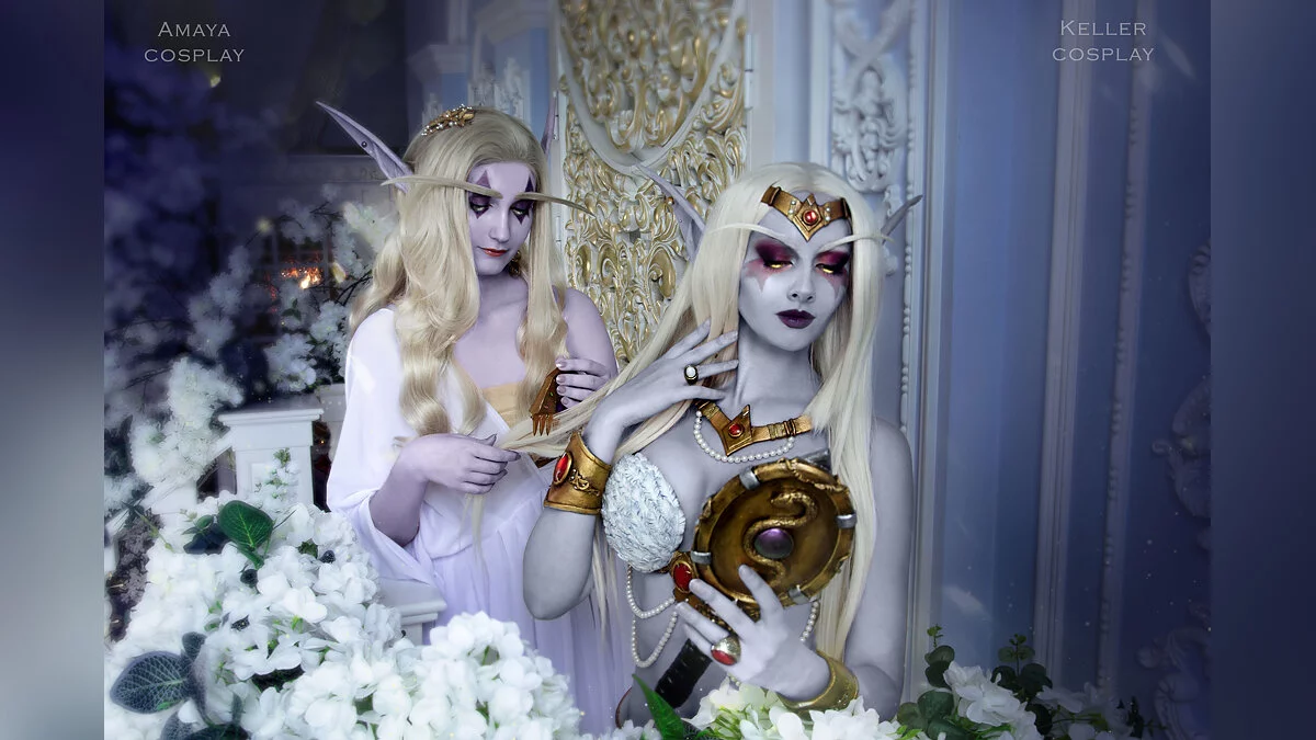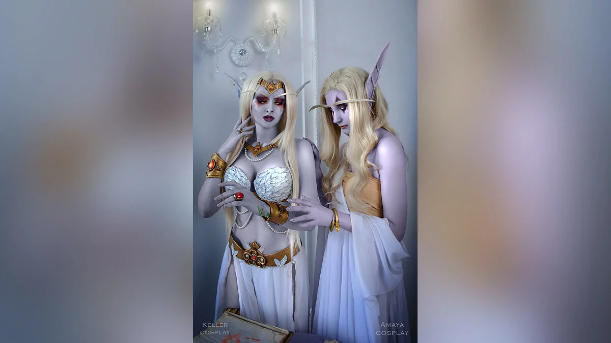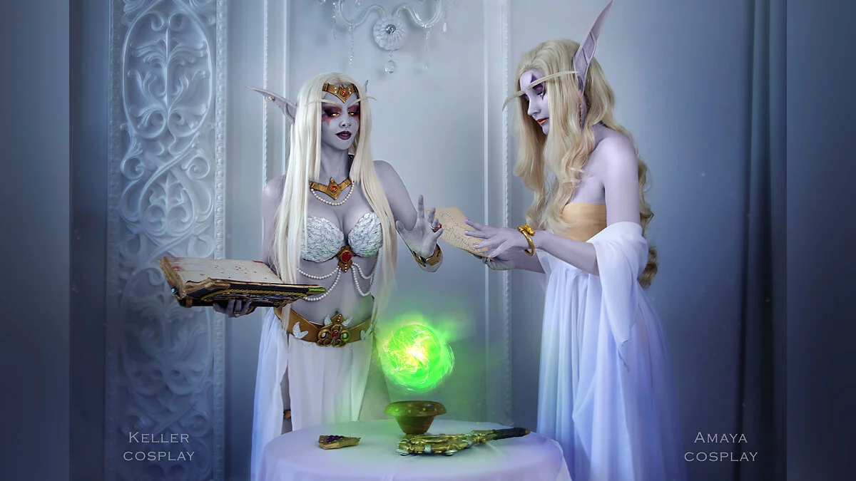 Азшара — последняя королева ночных эльфов. Именно она по ошибке призвала в Азерот войска Пылающего легиона, что привело к Войне древних. Сама Азшара вместе со свитой ушла под воду, где ее превратили в нагу. Косплей на королеву и ее преданную служанку леди Вайш сделали Катя Келлер и Катерина Амай. Фотограф — Шагрон. Ретушь — Алина Такеши.