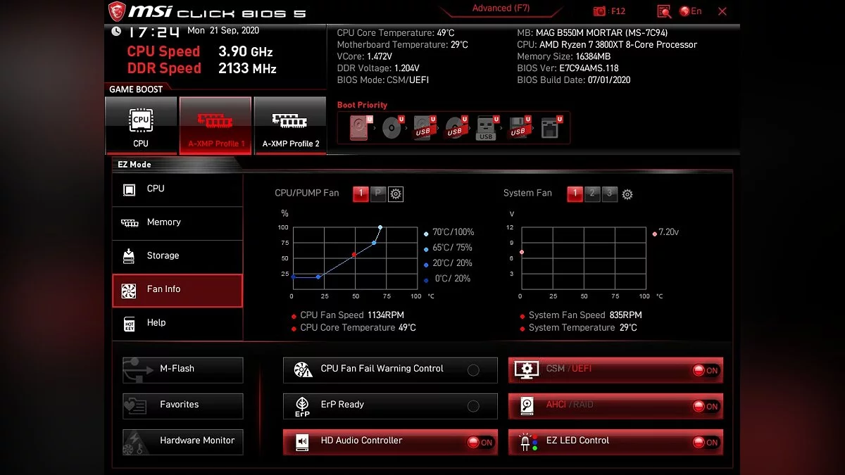 Материнская плата отлично справилась с процессором Ryzen 7 3800XT, что позволит не беспокоиться о производительности как минимум до конца поколения PlayStation 5 и XBox Series X. Более того, B550M MORTAR будет поддерживать и новые Zen 3, которые должны выйти уже в этом году.