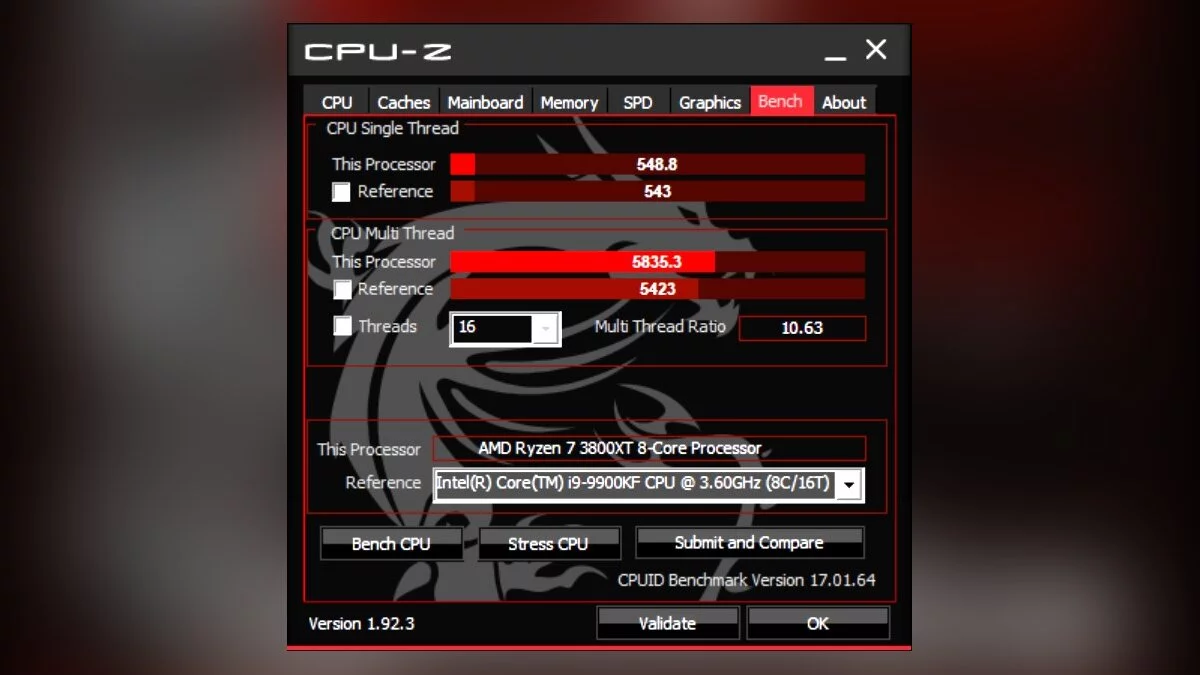 Мы проверили производительность системы в бенчмарках CPU-Z и Cinebench R20. В тесте CPU-Z Ryzen 7 3800 XT обходит Intel i9-9900KF в многопоточной производительности и незначительно опережает его в однопоточной.