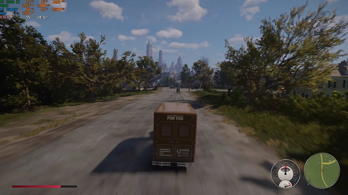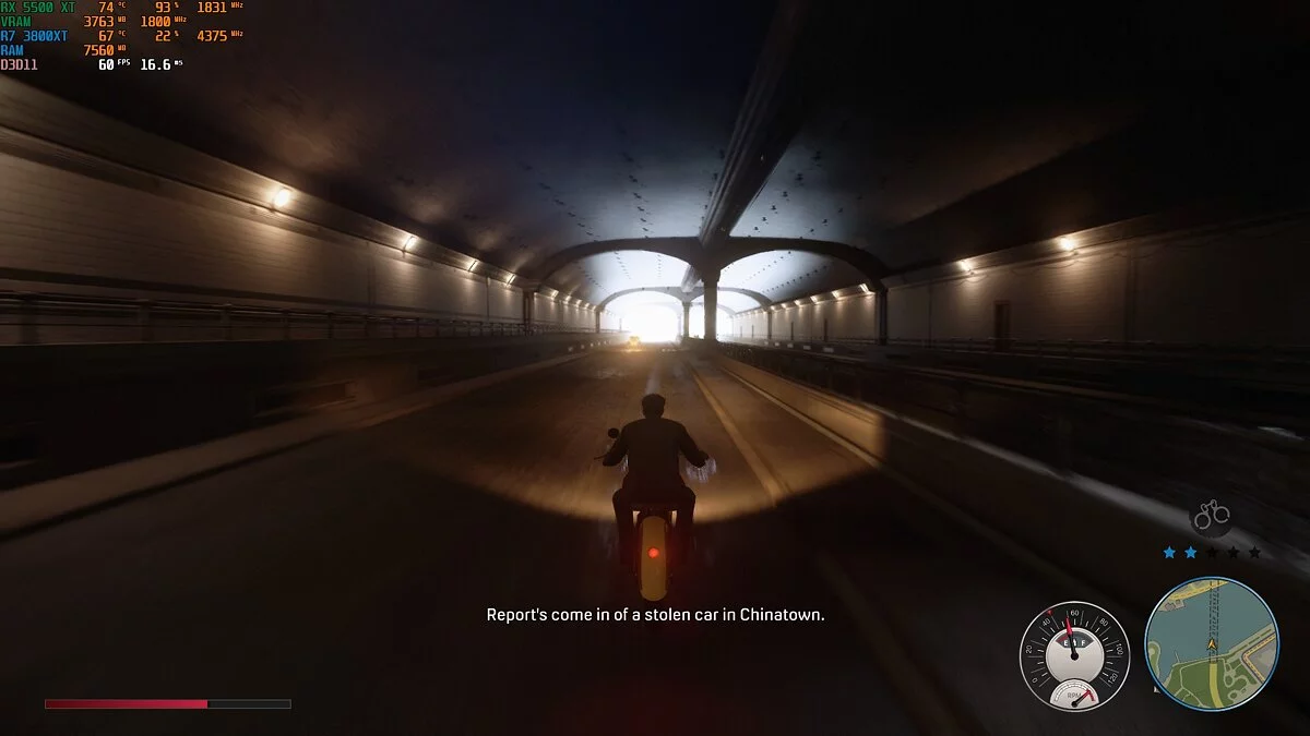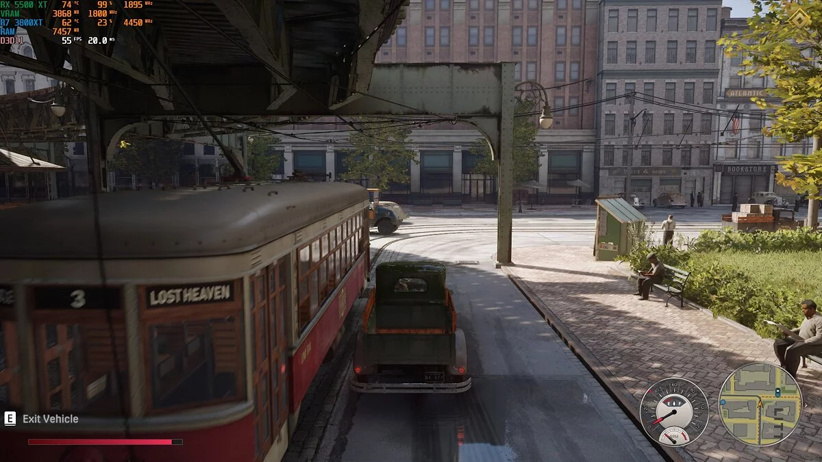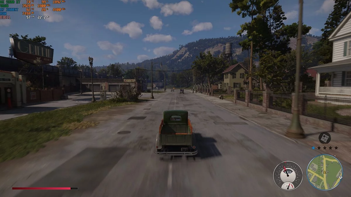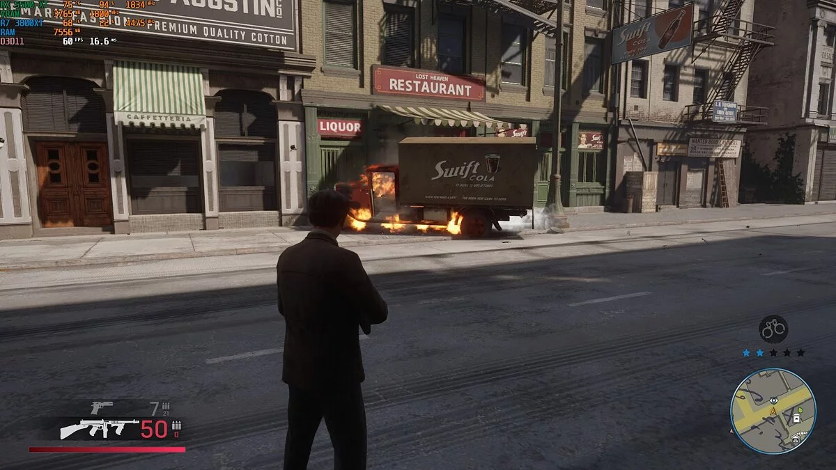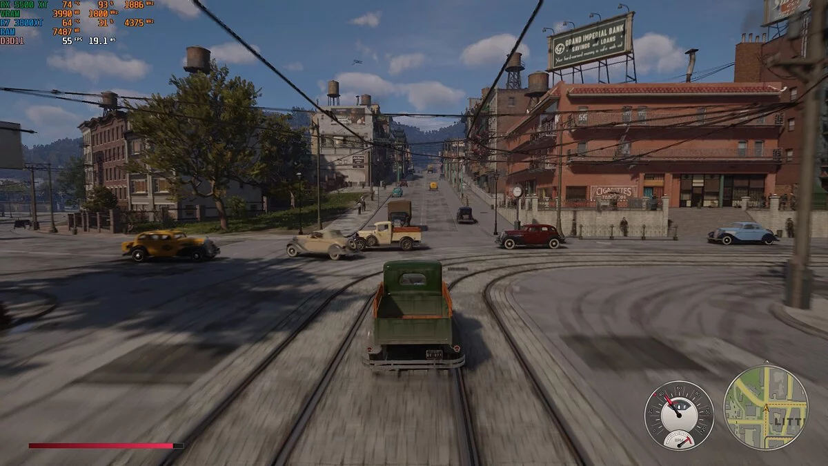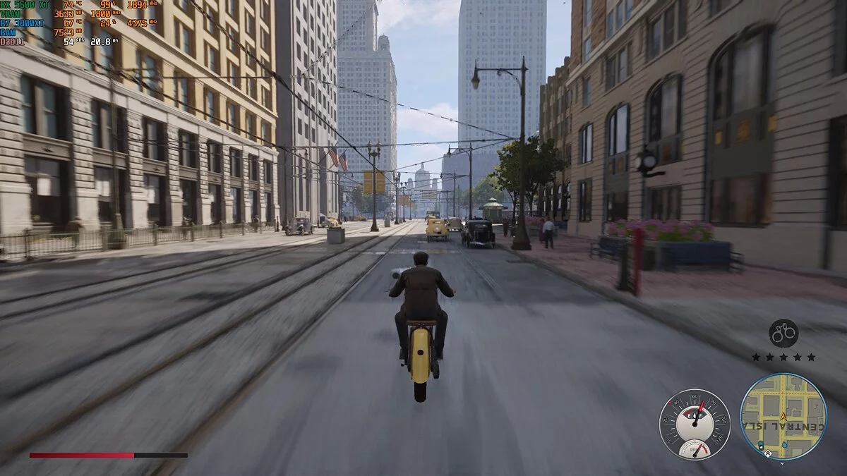 Mafia: Definitive Edition. «Мафия» — игра с открытым миром, а это всегда повышенная нагрузка на процессор. В ходе теста загрузка Ryzen 7 3800 XT составляла всего 25-30%. Производительность явно упиралась в видеокарту. Тем не менее на высоких настройках игра выдавала 50-60 кадров в секунду. При перемещении по городу фризов замечено не было. Даже при быстрой езде на мотоцикле.