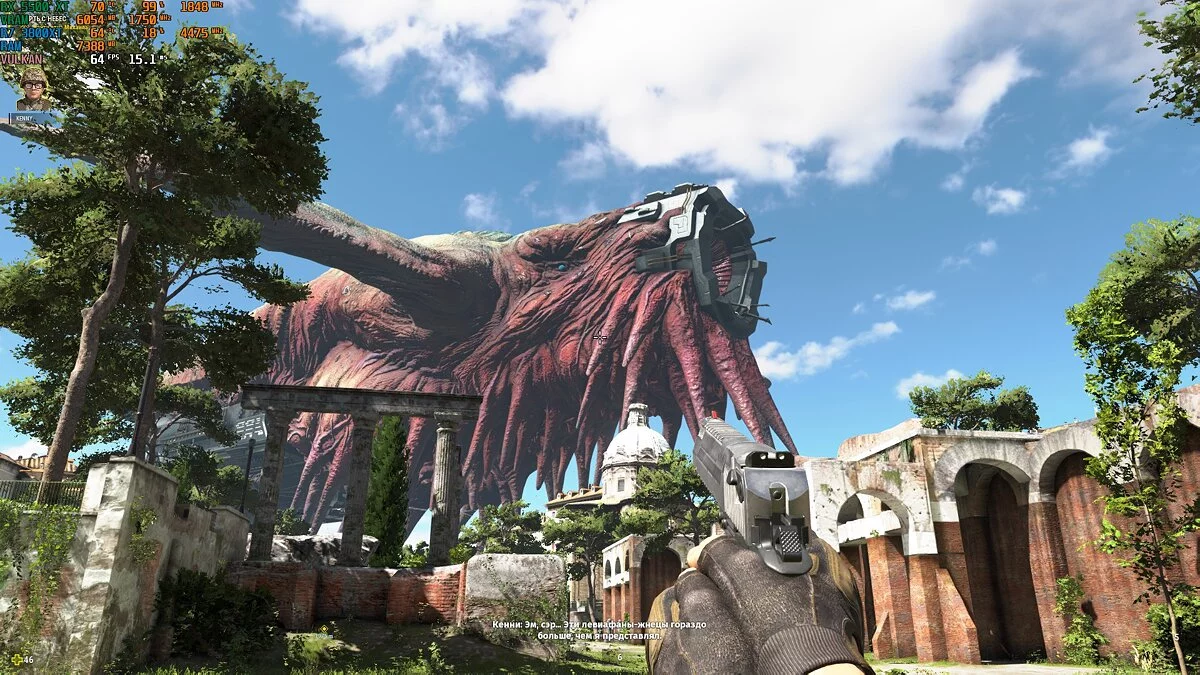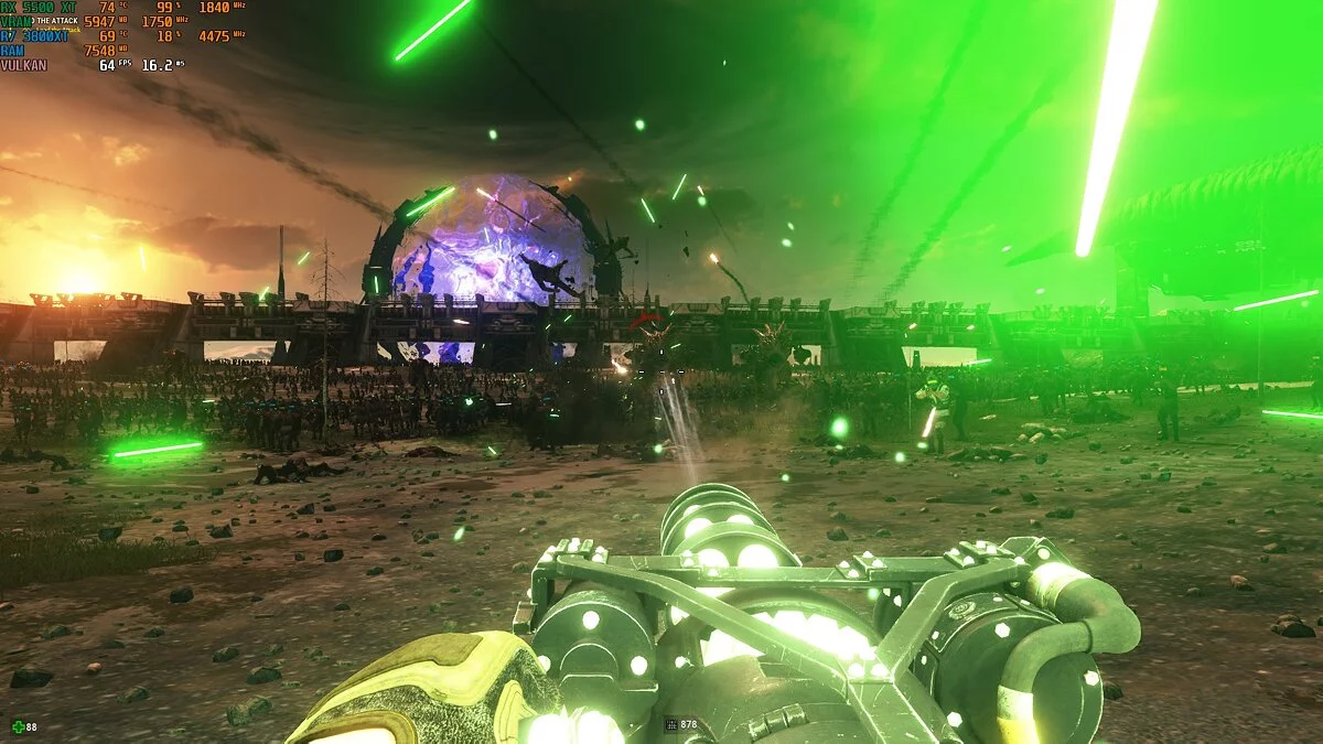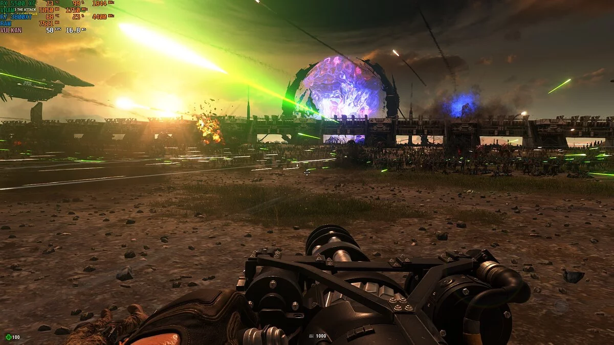 Serious Sam 4. Игра начинается с масштабной сцены сражения с тысячами противников. Геймплей при этом был плавным, а мониторинг показывал 50 FPS и выше. Кроме того, несмотря на огромное количество объектов в кадре, процессор был загружен не сильно — порядка 20%. При прохождении кампании счетчик также не опускался ниже 50 при высоких настройках графики. Температурные показатели оставались примерно такими же, как и в тесте «Мафии».
