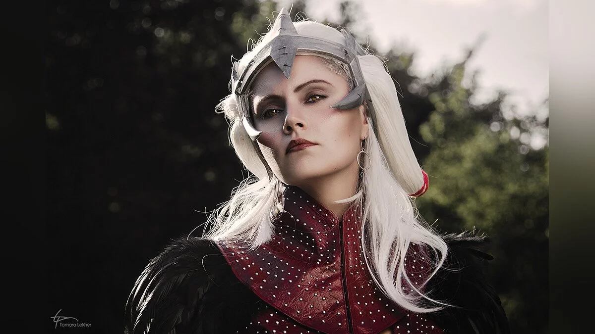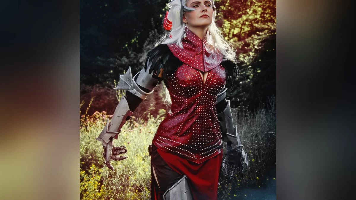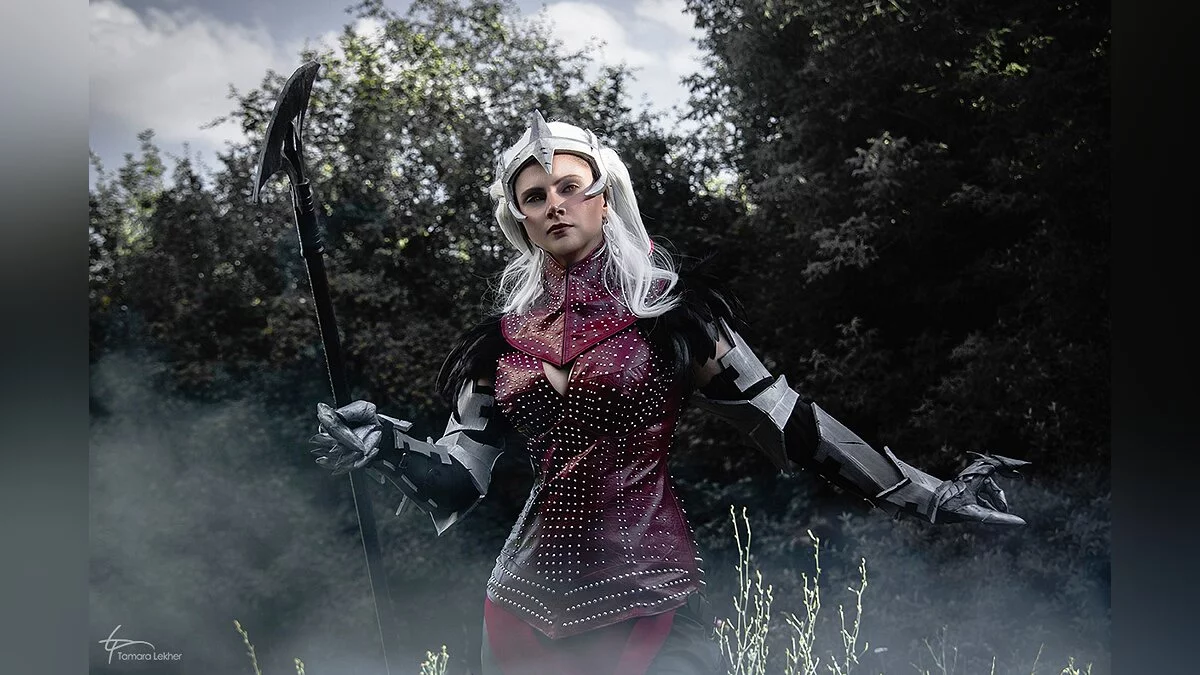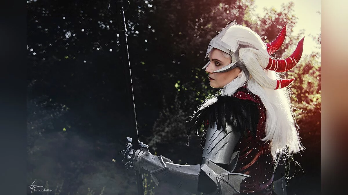 Мне запомнился образ Флемет во второй части Dragon Age, хотя она там появлялась только в одной сцене. Я долгое время не решалась сделать ее костюм — у него слишком сложный парик и доспех. Однако в итоге наряд Флемет стал своего рода челленджем для меня. С которым я справилась.