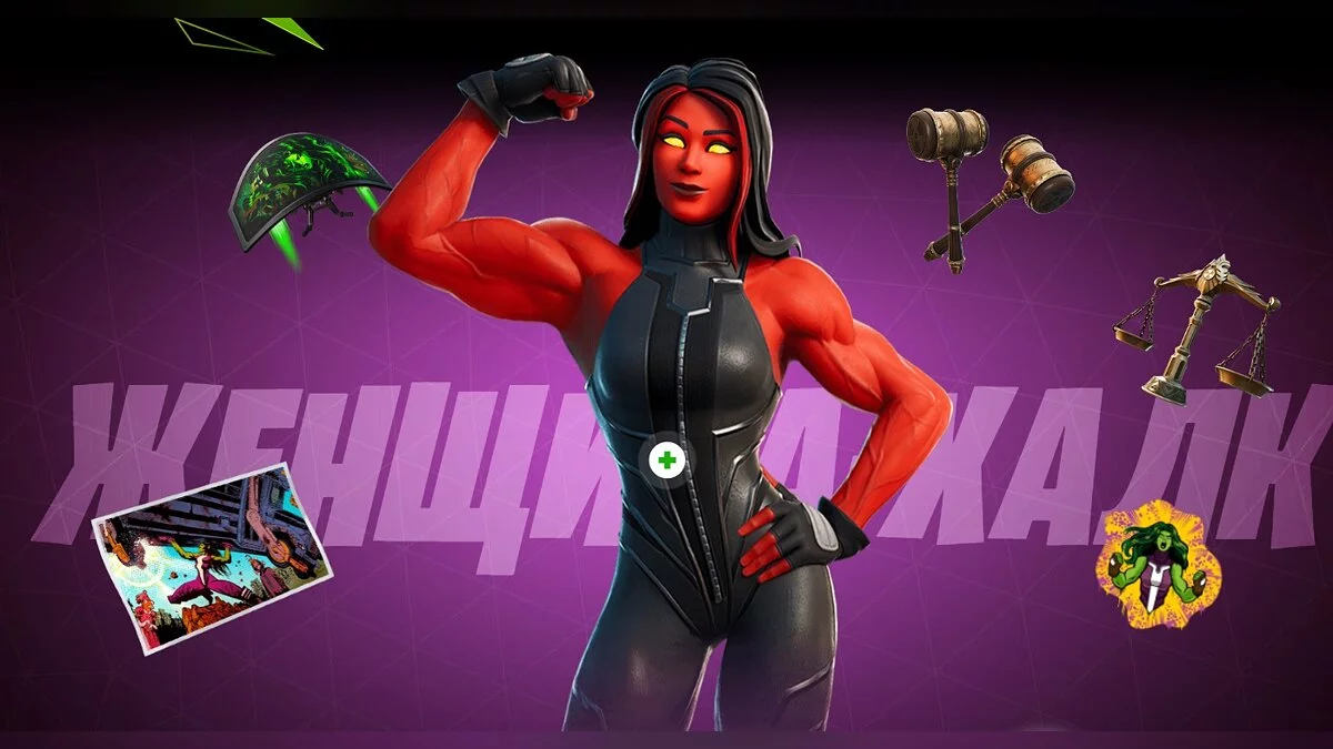 Возможно, многие хотели увидеть именно Брюса Беннера. Но стоит признать — Халк великоват, чтобы адекватно вписаться в геймплей Fortnite, особенно если великану придется залезать в дома за лутом. Поэтому игрокам придется довольствоваться Женщиной-Халком. Что интересно, второй вариант скина — не просто замена цвета кожи. Это уже другой персонаж — Элизабет Росс, которая больше известна, как Красная Женщина-Халк. Достаточно лишь взглянуть на пряди волос, окрашенные в красный цвет.
