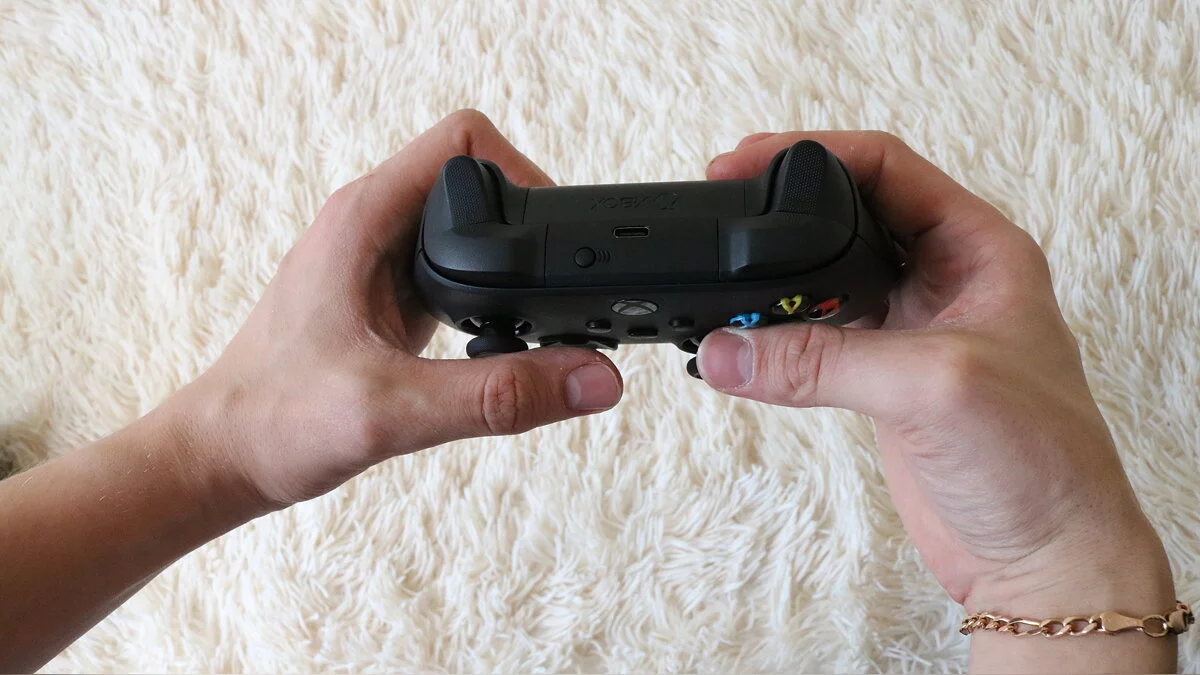 Чуть не забыли про новый контроллер! Упакован он в плотный пакетик, чтобы не поцарапать. Больше, к сожалению, почти ничего интересного. Это всё тот же классический, мы бы даже сказали — проверенный годами геймпад. Даже подключается так же: нужно одновременно нажать кнопки на приставке и контроллере. Но небольшие нововведения всё же есть: благодаря новым ручкам держать его немного удобнее. Изменились и курки, теперь они текстурированы и не скользят во время напряжённых каток под потными пальцами. Снизу геймпада расположен разъём Microsoft и классический 3,5-мм jack для гарнитур, а сверху — USB Type-C и клавиша Pairing.