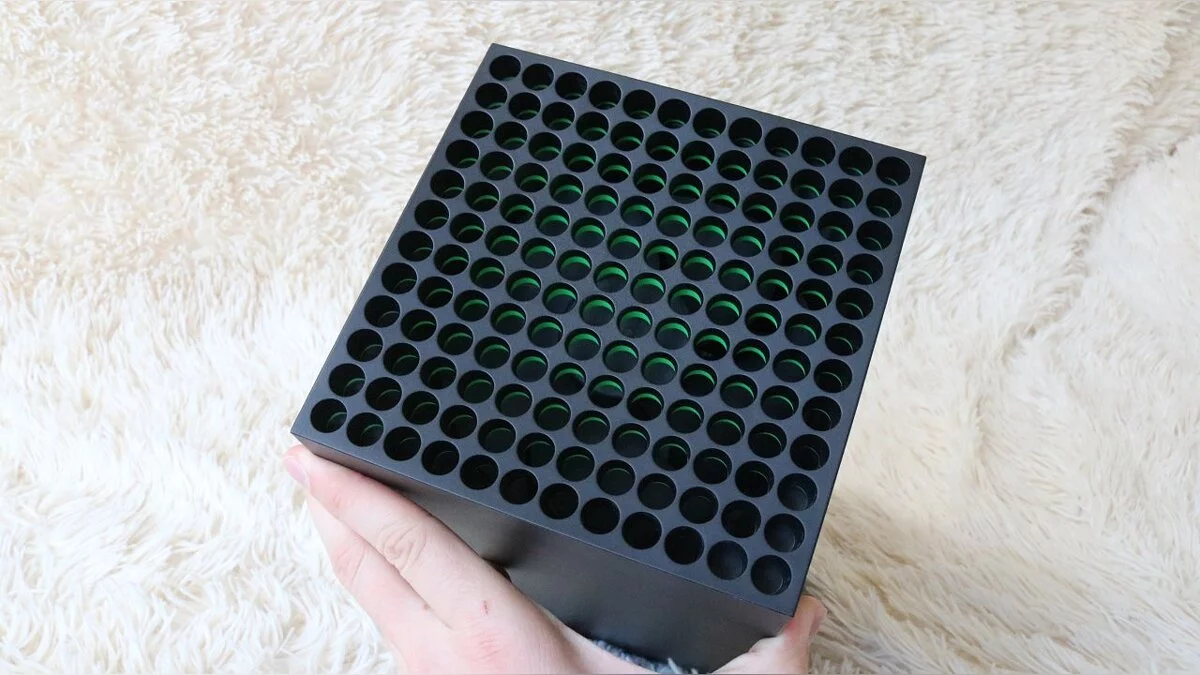Ещё немного о размерах: мы решили сравнить консоль с прямыми конкурентами. Так, новый Xbox немного больше электрочайника и чуть уже автомобильного аккумулятора. По габаритам консоль явно вышла победительницей. Да и, в любом случае, запускать игры получится только на ней.