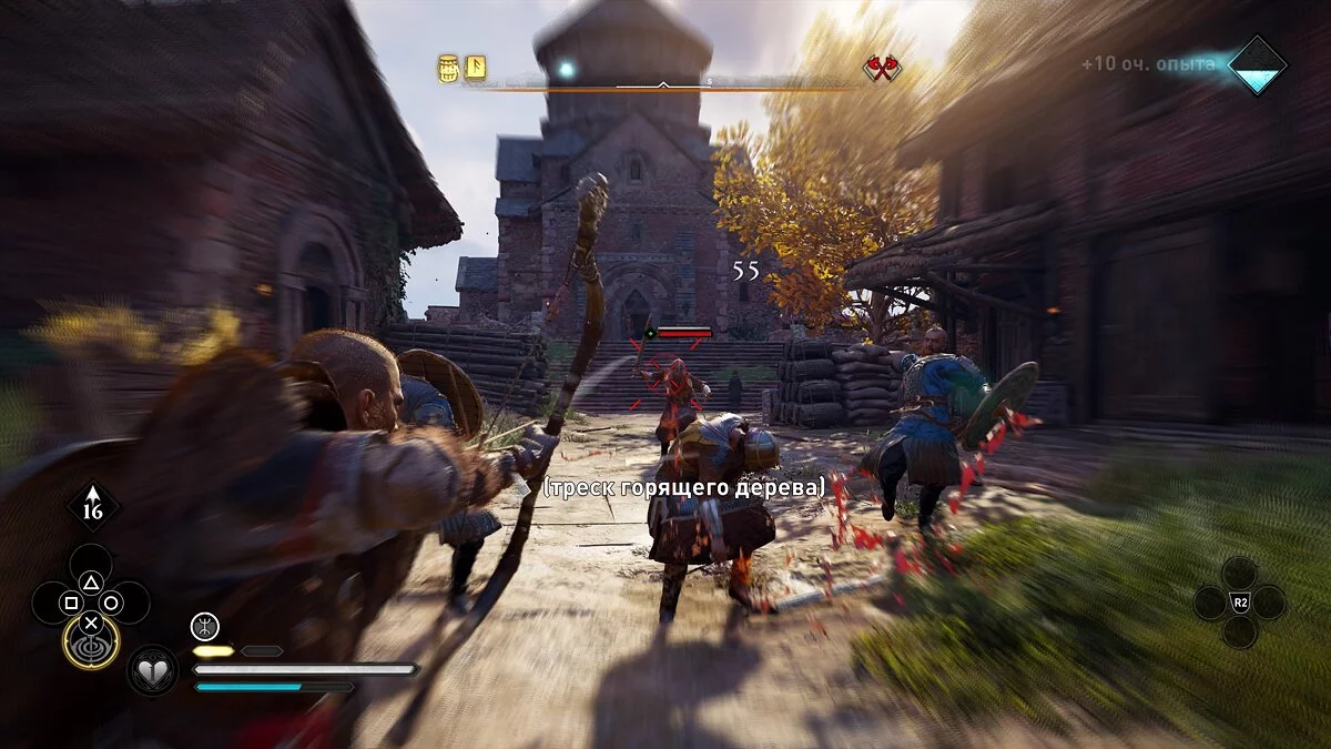 Разнится лишь антураж. То мы среди болот разыскиваем попавших в беду викингов, попутно вырезая толпы противников, то — штурмуем небольшую деревеньку, в которой окопались враги или освобождаем замок от засевших там неприятелей. Действительно нетривиальных эпизодов наберётся как раз на вот эти 5%. Например загадка со светом в Асгарде или грандиозная попойка по случаю свадьбы и коронации. Большую часть времени «Вальгалла» внаглую пытается выезжать на антураже и отмороженной жестокости. Согласитесь, не так уж и часто выходят игры, где основной способ добычи стройматериалов — это разграбление христианских монастырей. И это я ещё скромно молчу про натуралистичные сцены пыток и карательные зачистки английских деревень с последующим их поджогом.