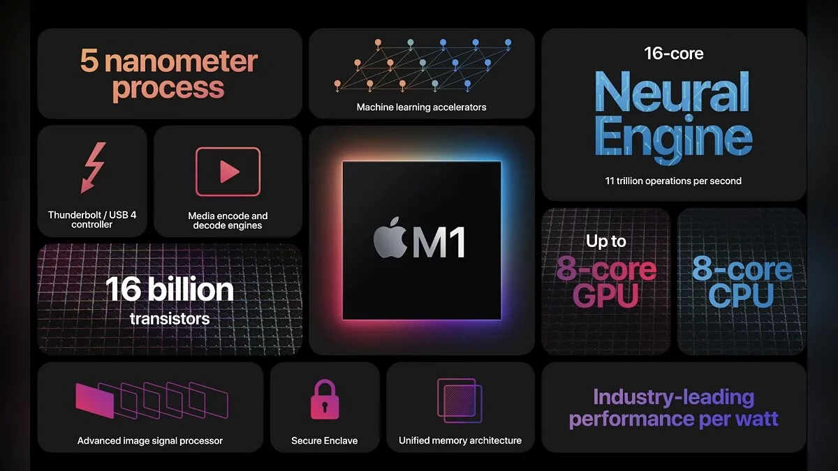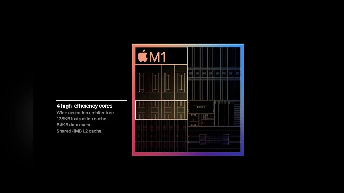«Мас — это инновация», — заявил глава компании. Камера переместилась в подвал кампуса, где зрителям показали «следующее поколение» компьютеров. Apple анонсировала процессор M1, который будет устанавливаться в новые поколения компьютеров. Из-за того, что он постоянно работает в фоновом режиме, компьютер активирует систему за считанные секунды.