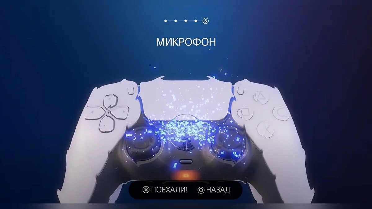 Наконец, даже встроенный микрофон обучили взаимодействовать с игрой. Подув в него, в Astro's Playroom можно подтолкнуть героя на его плоту, когда тот будет сплавляться по реке. Также встроенный микрофон позволяет не надевать гарнитуру, а разговаривать с тиммейтами или зрителями вашего стрима прямо через геймад. Плюс-минус устройство умеет отсекать посторонние шумы, фокусируясь на вашем голосе. Жаль только, русскоязычный ввод текста не поддерживается.