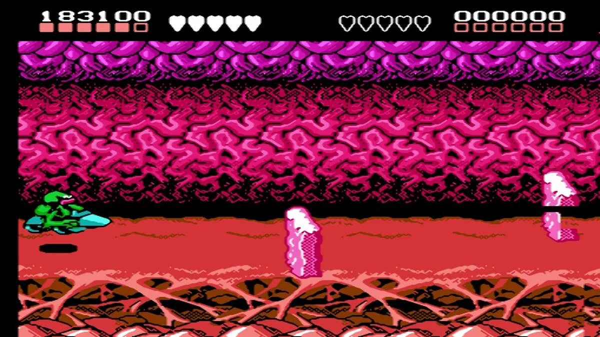 Некоторые называют этот этап и без того хардкорной Battletoads причиной того, что их психика была искалечена ещё в раннем детстве. И немудрено, ведь гоночный уровень требует от игрока буквально молниеносных рефлексов.