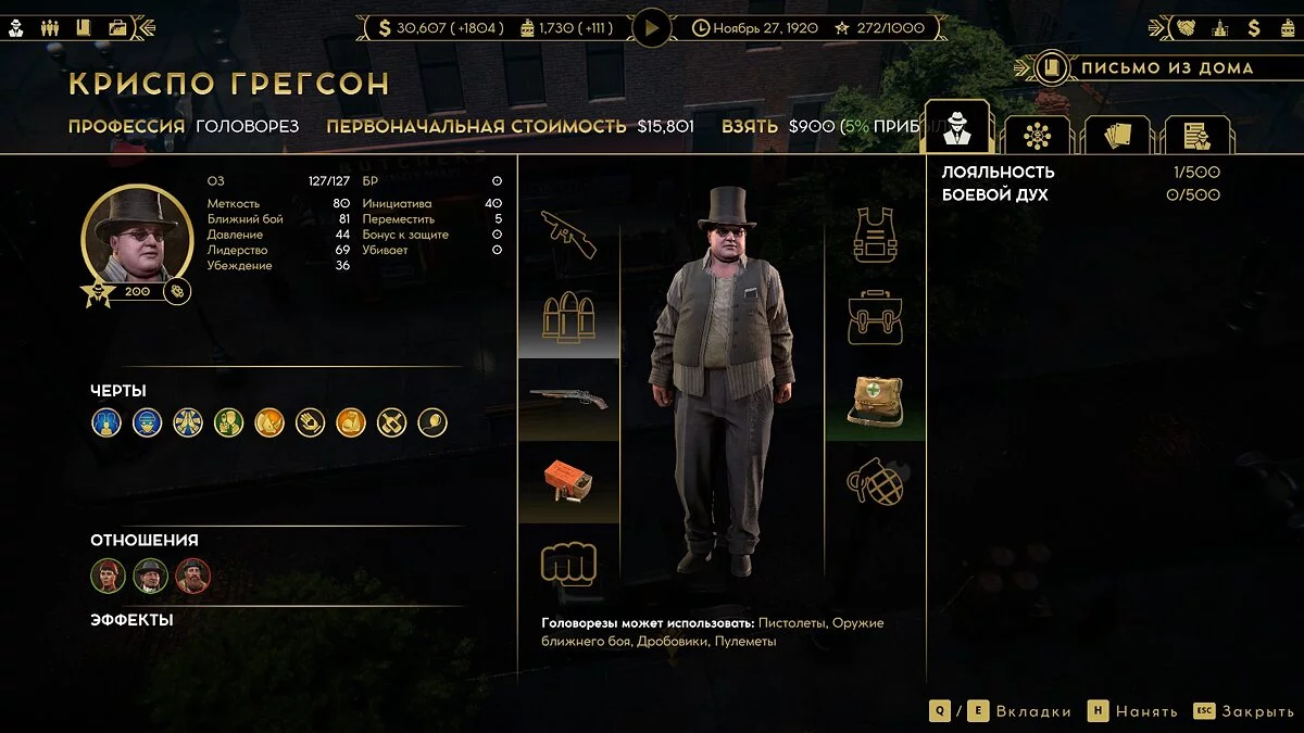 Чем больше члены команды на нас работают, тем выше их верность. Когда её будет достаточно, и мы будем уверены, что этот товарищ нас точно не предаст (да, в отряд может попасть предатель), можно будет приступать к выстраиванию структуры организации. Правая рука, советник, подручные, мафиози и информаторы — правильно подобранные члены семьи улучшат бизнес и снимут с плеч дона гору обязанностей.