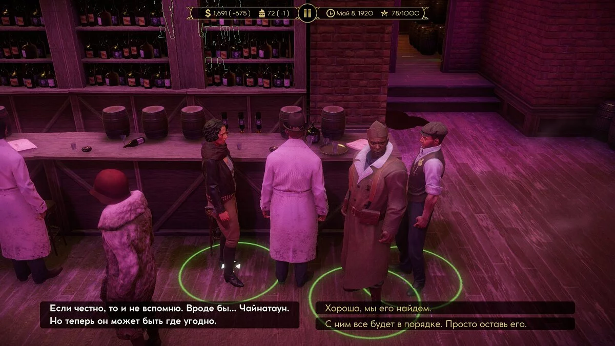 Сами заведения можно и нужно апгрейдить. Поскупились на безопасность — будьте готовы потерять кабак в очередной мафиозной войне. Забыли сделать ремонт — забудьте и о постоянных клиентах. Деньги в Empire of Sin зарабатывать очень сложно, поэтому надеяться на свои силы на ранних этапах крайне неразумно. Здесь на поле выходит дипломатическая система. Так что назначайте встречи с боссами, ведите переговоры, знакомьтесь и выстраивайте бартерные отношения. К счастью, в отличие от других проектов Paradox, в игре Romero Games есть прекрасное обучение, которое постепенно погружает игрока в происходящее и своевременно рассказывает обо всех тонкостях.