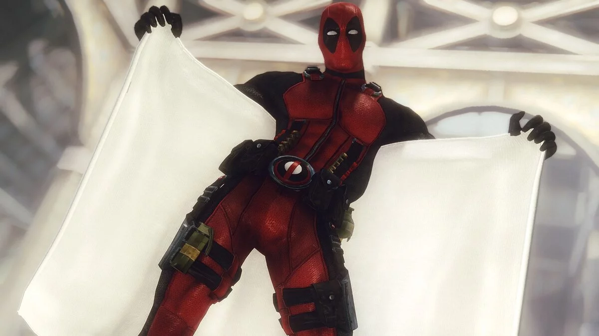 Если вы уже наелись сохраняющих атмосферу модов и хотели бы просто повеселиться, то костюм самого сумасшедшего персонажа вселенной Marvel как раз для вас. Болтливый наёмник Дэдпул наверняка нашёл бы себя в Тёмном братстве!