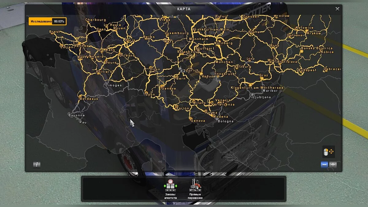 Если вас не устраивает навигация в оригинальной игре, есть отличное решение. Как нетрудно догадаться из названия, этот мод добавляет Яндекс.Навигатор, который заменяет стандартную систему. Из особенностей: на карте заменены все иконки, а звуковое сопровождение взято из оригинальных APK-файлов Яндекс.Навигатора. Это значит, что теперь управлять грузовиком можно под руководством Фёдора Бондарчука, Басты, Василия Уткина, Дмитрия Нагиева и других российских звёзд.