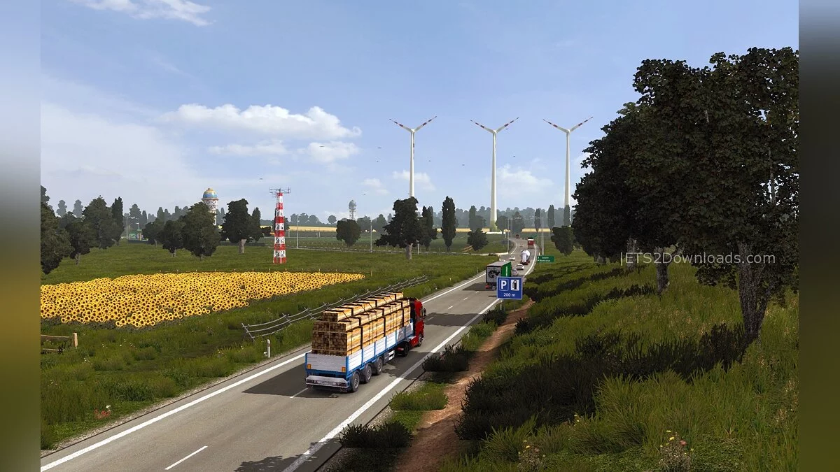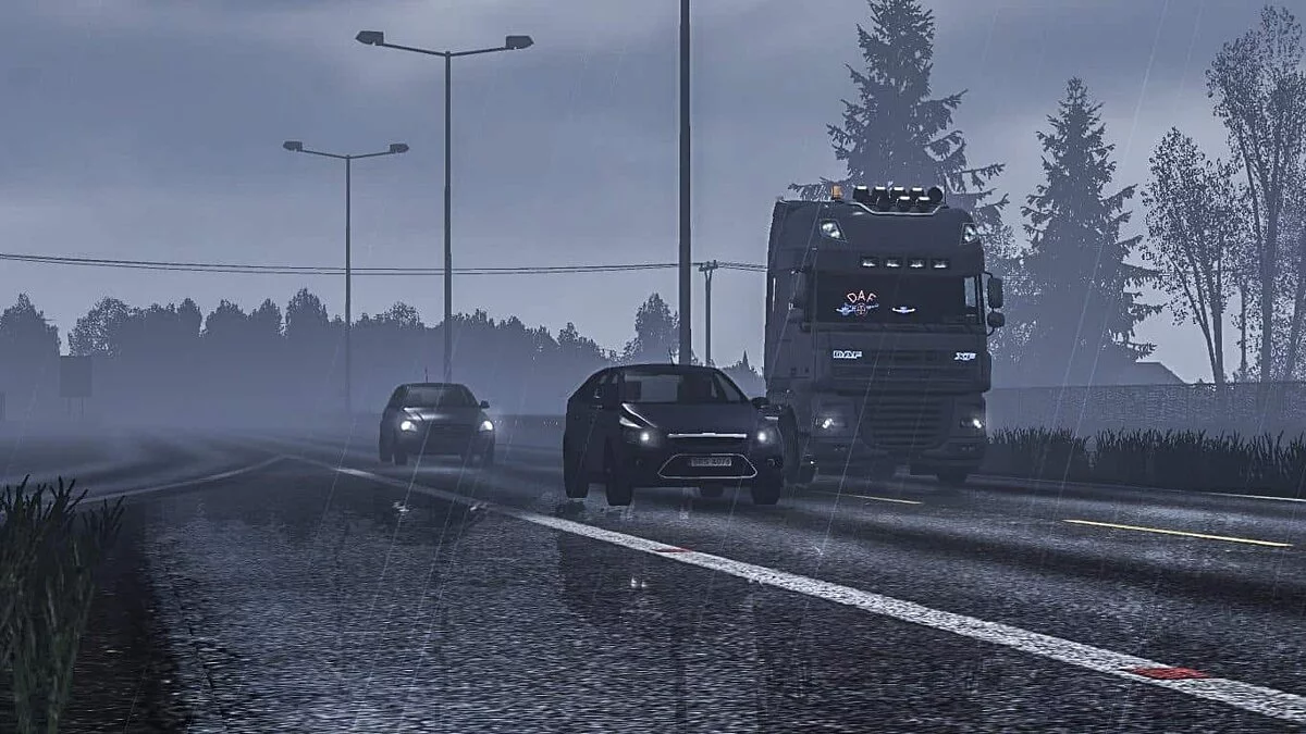 В нашей подборке уже был мод, позволяющий испытать свои силы на зимних дорогах. А вот модификация Summer Environment делает игру более «летней». Конечно, гололёда тут не встретишь, но аддону всё равно есть, чем удивить. Во-первых, изменения претерпели абсолютно все дороги и тротуары. Во-вторых, листва и трава стали куда гуще. В-третьих, обновилась погода, и теперь летние грозы и грибные дожди — верные спутники любого дальнобойщика.