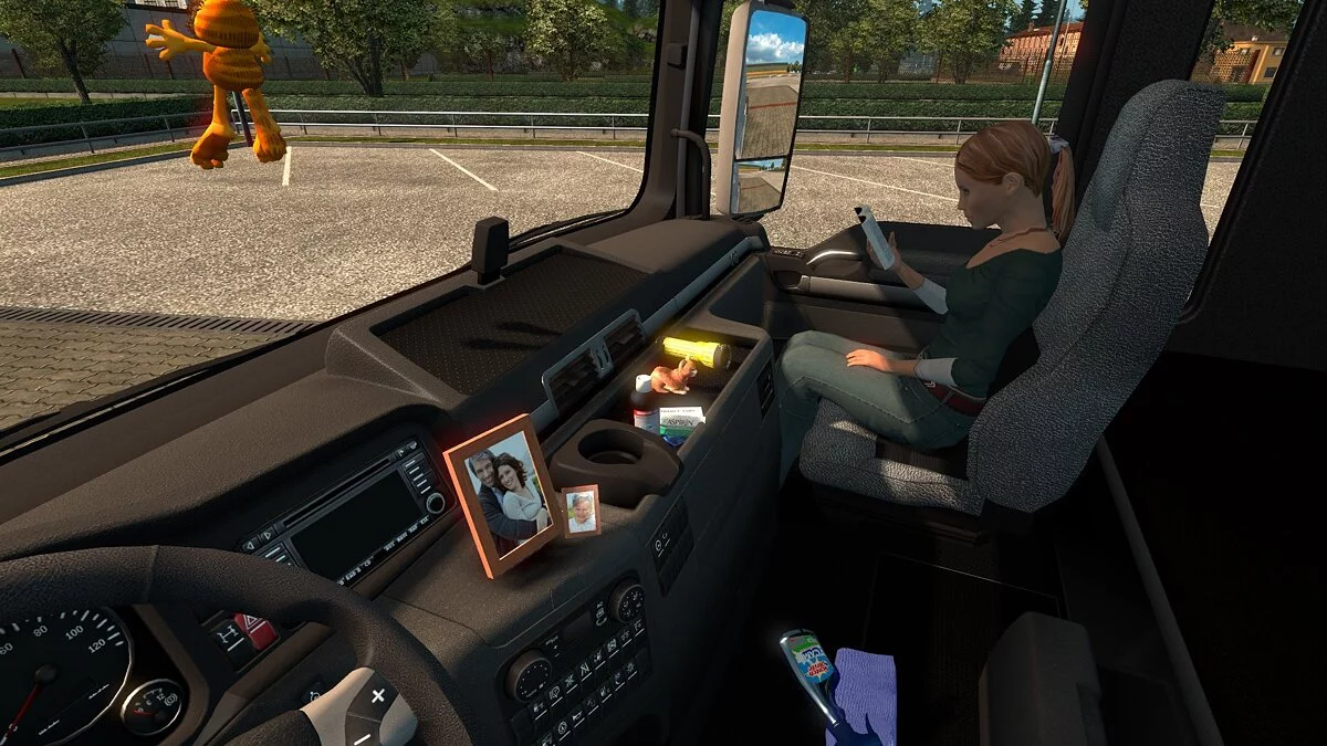 Для тех, кому не нравится дефолтный вид кабины грузовика, была разработана модификация SiSL's Mega Pack, позволяющая внести разнообразие в серые будни водителя. Аддон содержит более 400 аксессуаров для кабины, чтобы кастомизировать её по своему вкусу. Среди доступных предметов: закуски, освежители воздуха, болванчики. Можно даже посадить рядом штурмана. Признавайтесь, мечтали когда-нибудь прокатиться вместе с Дартом Вейдером? Те, кому и этого мало, могут добавить в игру свои собственные предметы с помощью страницы на Facebook. Так, в кабине может появиться фотография вашей семьи или флаг страны. Важное уточнение: для работы необходимо наличие DLC Cabin Accessories.
