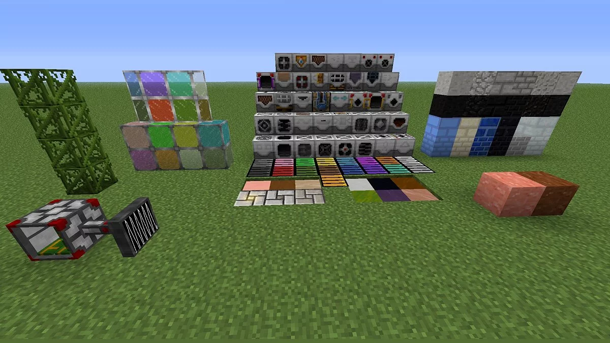 Набор новых инструментов и блоков для строительства, которые открывают дополнительные возможности дизайна и декорирования ваших зданий. А само возведение построек благодаря этому моду можно сделать полуавтоматическим.