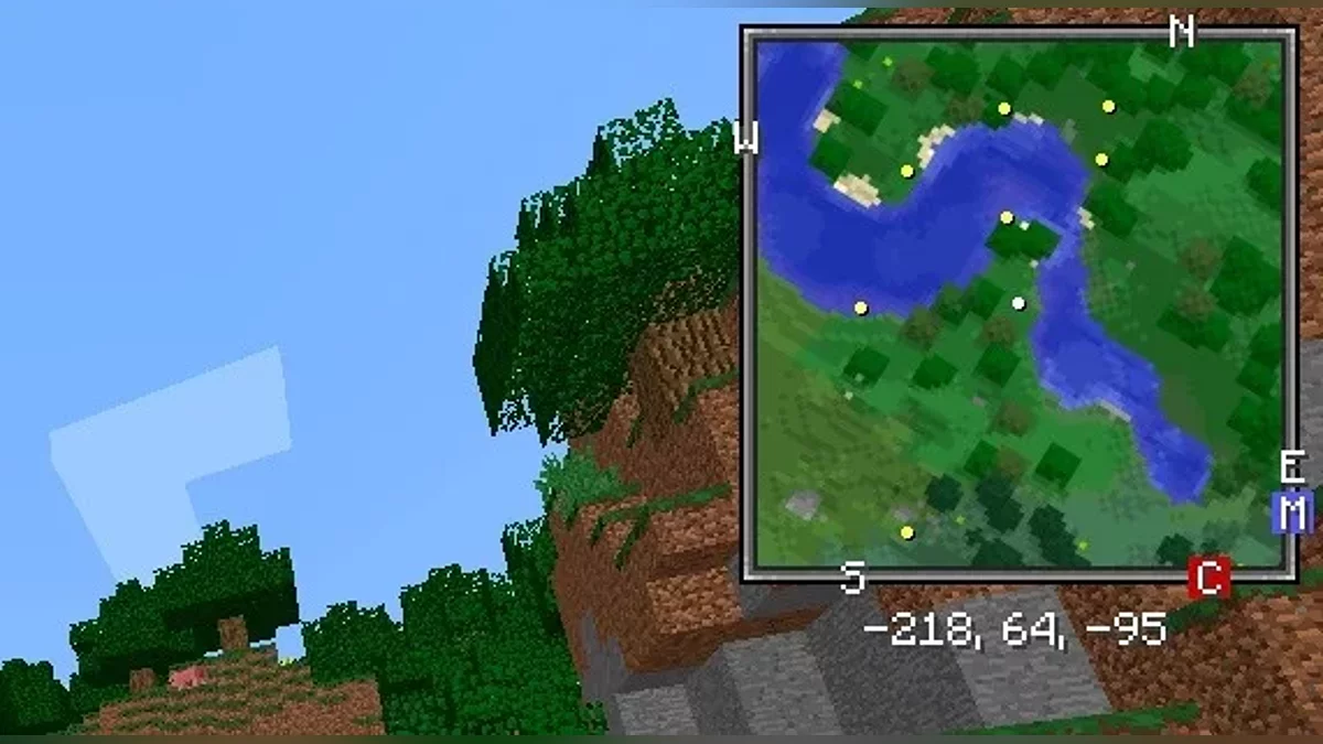 Мини-карта, на которой красным цветом обозначены предметы, желтыми точками — мобы, а белыми — игроки. Удобная функция, которая позволяет лучше ориентироваться в мире Minecraft.