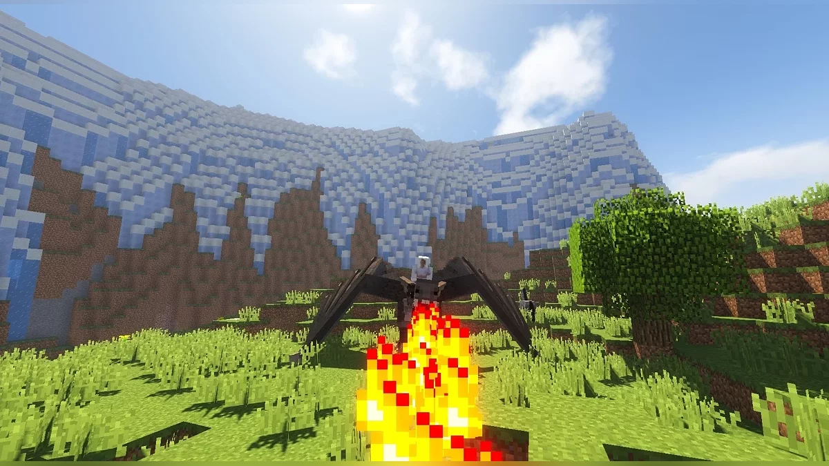 Благодаря этому моду в игре появятся драконы. Огненные ящеры будут встречаться по всему доступному миру, а ледяные — только в зимних биомах. Причём они способны атаковать холодом и могут заморозить вашего героя.
