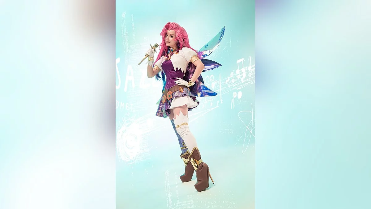 Серафина — певица из мира League of Legends. В бою она полагается исключительно на свою музыку, которой оглушает и наносит кровоточащие раны врагам, а заодно исцеляет союзников. Косплей на Серафину сделала Helly Valentine.