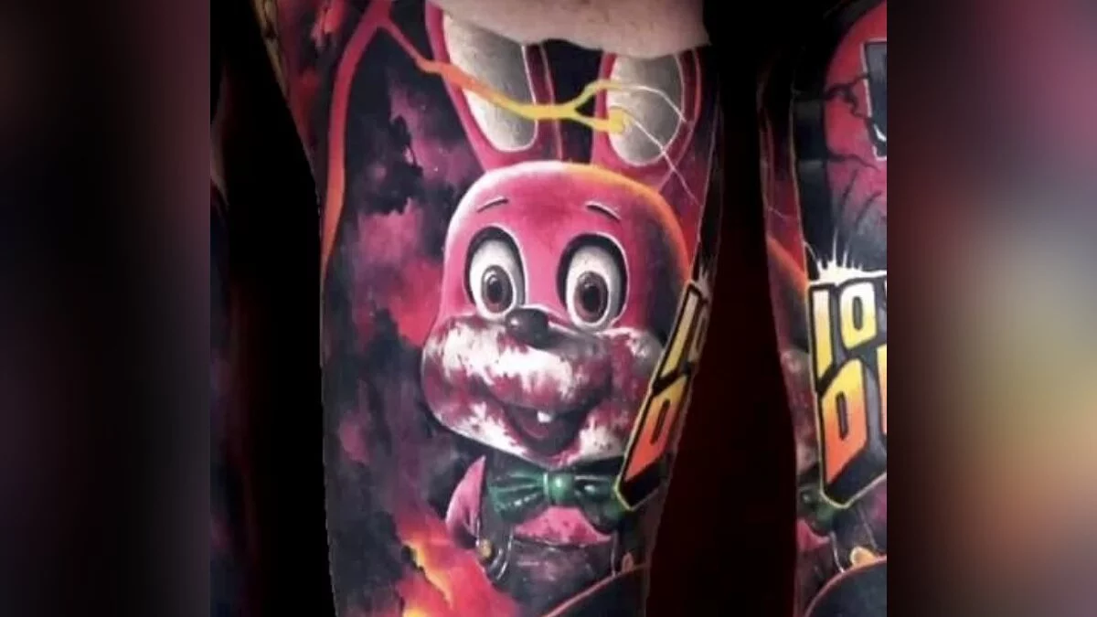 Начнём с известного блогера-фифера Panda FX. У молодого человека множество татуировок по всему телу: самую первую он сделал в 18 лет. Есть у него и тату на игровую тематику. На руке красуется кролик Бонни из серии игр Five Nights at Freddy's. Во всяком случае, рисунок очень похож на персонажа франшизы.