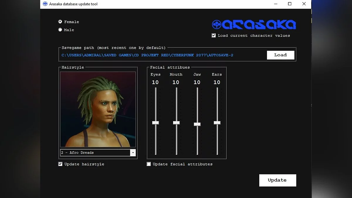Arasaka Appearance Updater. Изменение внешности Ви после начала игры