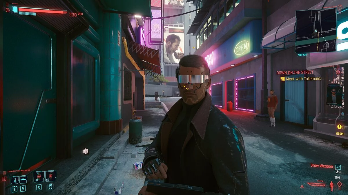 Миникарту можно сделать прозрачной, масштабировать или вовсе оставить один лишь компас. Теперь вы точно не заблудитесь на опасных улицах Найт-Сити.