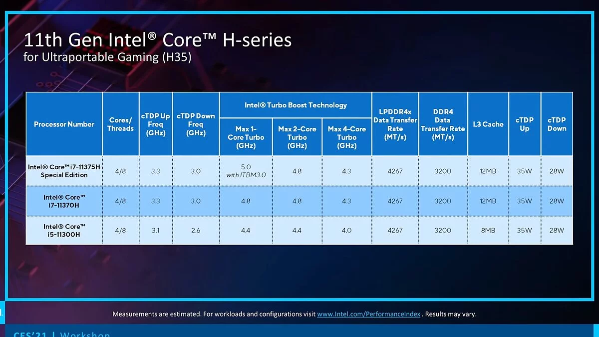 Кроме того, ноутбучные процессоры имеют до 8 ядер и 16 потоков, в то время как Intel представила пока только 4-ядерные 8-поточные версии Tiger Lake, к тому же ещё и с более высоким теплопакетом из-за техпроцесса 10 нм.