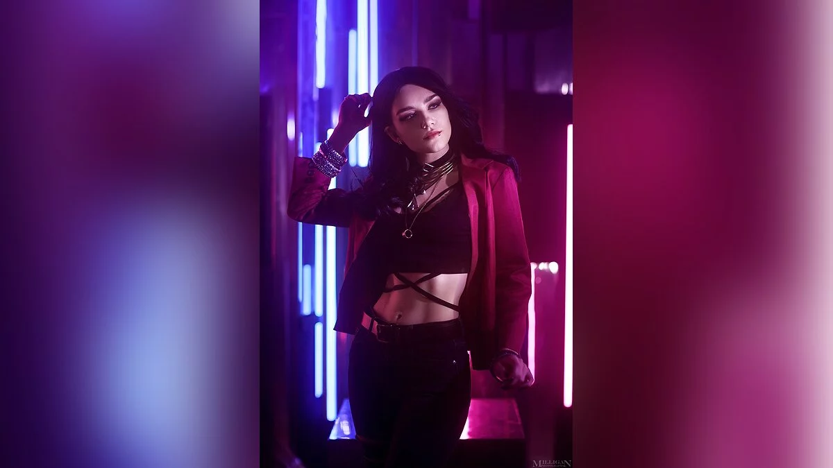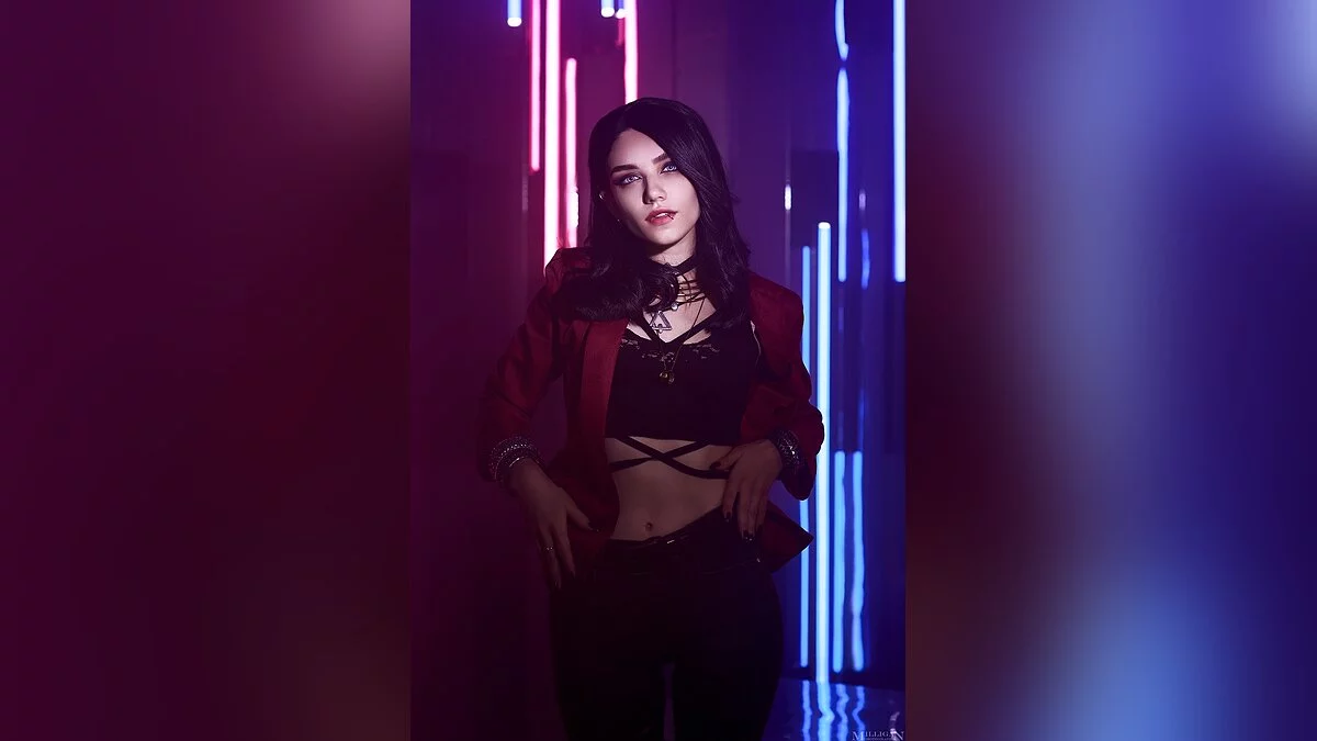 Ещё одна участница группы K/DA, которая стала популярна в косплее. Эвелинн — капризная бунтарка, которая часто устраивает истерики, если что-то идёт не по её желанию. Косплей на эту героиню сделала Валерия Химера. Девушка опубликовала каноничный и фансервисный фотосеты.